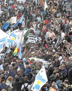 PALABRAS DE CFK AL DESPEDIR A KIRCHNER La resurrección Al retirarse del cementerio de Río Gallegos donde despidió a su compañero político y sentimental de toda la vida, la presidente CFK entregó una definición que va mucho más allá del momento y el lugar en que la pronunció. “No vamos a cambiar justo ahora”, dijo con una sonrisa a pesar del dolor. Por Horacio Verbitsky Desde Río Gallegos No era necesario ser creyente para sentir emoción durante la sobria y cálida ceremonia con que tres sacerdotes amigos de la familia Kirchner despidieron a Néstor, el viernes en el cementerio municipal de esta ciudad que él condujo, como intendente y gobernador. Todo transcurrió con una intensidad, un decoro y una ternura que ninguno de los privilegiados que pudimos asistir olvidará. Cristina quiso que la acompañara un centenar de personas, entre representantes de organismos defensores de los derechos humanos que llegaron desde Buenos Aires, familiares de Kirchner, unos pocos legisladores a los que siente próximos, como Agustín Rossi o Eduardo Fellner; amigos de toda la vida y compañeros de militancia, de ella, de Néstor y de Máximo Kirchner. En cambio, dispuso que los ministros y funcionarios no abandonaran el trabajo en Buenos Aires, con escasas excepciones como el jefe de gabinete Aníbal Fernández y su vice Juan Manuelito Abal Medina, y aquellos que acompañaron a los Kirchner desde Santa Cruz, como Julio De Vido, Carlos Za-nnini, Héctor Icazuriaga o Nicolás Fernández, o en la militancia setentista, como Carlos Kunkel y El Pampa Alvaro. Algunos que ignoraban la consigna, o que decidieron ignorarla porque necesitaban una foto, debieron volverse del Aeroparque sin asiento en los aviones, como el Procurador del Tesoro, Joaquín Da Rocha, el resistente. Murió sereno Mientras aguardaba dentro de la capilla la llegada de la comitiva, el padre de Plaza de Mayo Julio Morresi se acercó a María Ostoic y le dijo que con su hijo se había ido el mejor. “Ya va a venir otro”, respondió la madre del ex presidente, que al filo de sus 90 años mostró una serenidad asombrosa. Contó que en el rostro de su hijo muerto vio una expresión relajada. “Murió sereno.” Como quien reflexiona en voz alta dijo que el acto en el Boxing Club con los gobernadores le sonó como una despedida y que no entendió qué intentaba transmitir Kirchner cuando dijo que volvía a Río Gallegos. “Tal vez así impidió una tragedia mayor”, reflexionó, enigmática. No parecía que estuviera hablando de política. Suspiró y dijo: “Vuelve a la ciudad en la que nació. Los hijos deberían enterrar a los padres y no al revés”. Amigos de Río Gallegos contaron que Kirchner acababa de comprar una parcela en el cementerio local y que la noche anterior a su muerte había hablado de ello con Cristina. Los dos dijeron que no les gustaban los velorios en el Congreso, a cajón abierto, en los que los restos de lo que fue una persona quedan expuestos a las miradas morbosas de cualquiera. En la segunda fila de la nave escuchaba estos comentarios la hija menor de María Ostoic, María Cristina Kirchner, Macris o la verdadera Cristina Kirchner, como bromean los íntimos, a quien acompañaban sus hijos, un morocho fornido de 12 años y una señoritunga pizpireta de 11. Farmacéutica del hospital local, Macris rara vez viaja a Buenos Aires. Todos los Kirchner han heredado la nariz de María Ostoic, pero Macris comparte el rostro romboidal de su sobrino Máximo, a quien se parece más que a sus hermanos Néstor y Alicia. Máximo, que durante más de veinte horas no se separó de su madre en la capilla ardiente, se estremeció con un recuerdo al abrazar a un compañero en Río Gallegos. “Al matar a ese pibe en Constitución también mataron a mi viejo. Estaba indignado. Todos esos tipos tienen que ir en cana”, musitó. Junto con Cristina y sus hijos llegó su hermana, la médica Giselle Fernández. En la capilla también se abrazaron Alessandra Minnicelli, la esposa del encanecido Julio De Vido, quien hace apenas un mes perdió a su hijo Facundo, de 21 años, en un estúpido accidente cuando su auto mordió un cordón y embistió un poste, y la actriz Andrea del Boca. Hace cuarenta años ambas actuaron en Andrea, una película infantil filmada en esa misma ciudad. No habían vuelto a verse desde entonces. Se tenían de la mano, con los ojos empañados por el llanto. La muy austera ceremonia ocurrió en la capilla del único cementerio de Río Gallegos, que no es privado por si hace falta decirlo, y estuvo a cargo de tres sacerdotes de estrecha relación con la familia Kirchner. Junto al espacio reservado para el féretro instalaron una corona muy sencilla, de pocas pero frescas flores, con una cinta argentina de plástico que sólo decía Cristina, Máximo y Florencia. No fue una misa, sino la lectura de un breve texto bíblico y una conversación entre amigos. Por eso el obispo Juan Carlos Romanín, quien desde el conflicto docente encabezó la oposición provincial, aceptó un consejo de conocidos cautos y se abstuvo de comparecer. Todos tenían presente el sonoro improperio, “Hipócrita”, con que un feligrés católico respondió a las melifluas palabras del cardenal Jorge Bergoglio, y el fastidio que causó la fugaz aparición para las cámaras en la Casa Rosada de Alcides Jorge Pedro Casaretto, luego de siete años en que ambos políticos episcopales trataron de hacerle las cosas difíciles a Kirchner y a su esposa en todo lo que estuviera a su alcance. Esa jerarquía tiene escasa relación con el gobierno pero preferiría que se notara menos. Lo siente como una capitis diminutio porque sólo se concibe como parte de una Iglesia del poder, aunque declame lo contrario. En cambio se comentaba con tolerancia, por su edad y porque nunca hostilizó a Kirchner, el rezo del jubilado obispo de San Isidro y Morón, Oscar J. Laguna, y con respeto la discretísima visita del arzobispo de Luján, Agustín Radr