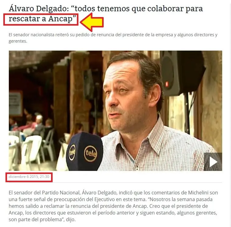 ***La idea del post es criticar e ironizar, debatir y divertirse, al que no le guste... hay posts de FUTBOL*** Esta noticia está en la prensa. Es verdad! Quienes quieran NEGAR la REALIDAD no entren! Los que quieran comentar sobre la situación actual, bienvenidos! No agredan porque bloqueo opinen con altura que esta buenísimo! link: https://www.youtube.com/watch?v=hYugUtXz4kE&feature=youtu.be LINK http://www.teledoce.com/telemundo/nacionales/alvaro-delgado-todos-tenemos-que-colaborar-para-rescatar-a-ancap/