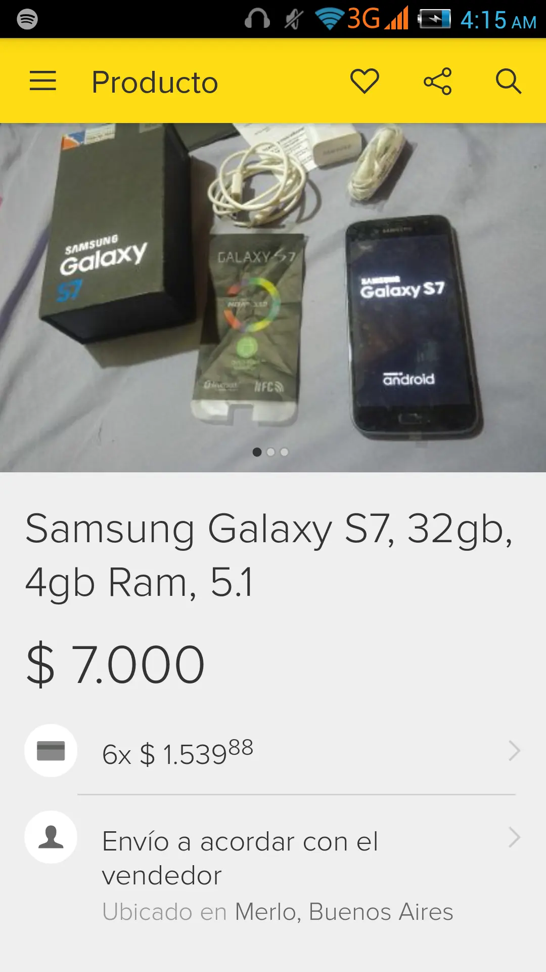 Buenas, hace poco yo estaba en MercadoLibre comparando precios de telefonos Cuando me encuentro con esta publicacion: El precio parecia medio sospechoso pero luego descubri lo siguiente: Los auriculares son los de la generacion anterior y no vienen en la caja de acrilico, el enchufe es extranjero (pero en la caja dice ensamblado en tierra del fuego, se puede ver un protector de pantalla que dice Galaxy S7 (La S usa la tipografia de samsung anterior. La cual no se usa mas) en el mismo protector aclara Full HD (pero el telefono es 2560x1440 QHD) Y POR ULTIMO ESTO: Ram en uso: 1839 Y de fondo se ve un mantel con diseño floreado. Ahora miren este video (MINUTO 0:28) EL MISMO MANTEL Y EL MISMO RAM EN USO. Link de la publicacion: http://articulo.mercadolibre.com.ar/MLA-636619219-samsung-galaxy-s7-32gb-4gb-ram-51-_JM El usuario que publico el telefono celular en los comentarios aclara que es original (no generico/clon) Pero como les mostre no es original. PORFAVOR COMPARTIR Y DENUNCIEN LA PUBLICACION, ANTES QUE ALGUIEN CAIGA O INCLUSO SEA ASALTADO. GRACIAS.