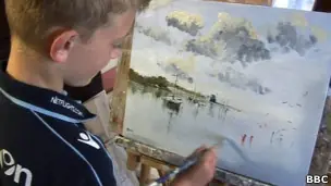 Trabajar en los medios tiene el privilegio de conocer a personas con gran talento, pero el caso del pintor inglés Kieron Williamson, de nueve años de edad, es fuera de lo normal. Mientras le espero en su casa para entrevistarlo pienso en lo pequeño que es y en cómo se ha ido convirtiendo en millonario. La semana pasada, 24 de las últimas piezas de Kieron se vendieron por un total de 250.000 libras (US$388.000). Los padres de Kieron descubrieron su talento cuando tenía cinco años de edad y desde entonces no ha parado de pintar. Esta semana el público tiene la oportunidad de ver las piezas junto con sus primeras pinturas en una retrospectiva de su carrera en Holt, Norfolk, unos días antes de que el artista cumpla 10 años. La exposición reunirá más de 100 obras y el primer libro sobre la carrera del pequeño artista. Pero, ¿Kieron piensa en el dinero? "No", exclama el artista de forma un poco abrupta para ser un niño tímido y luego agrega: "pero me gusta un poco". Los padres de Kieron descubrieron su talento en unas vacaciones familiares en Cornualles cuando tenía cinco años y desde entonces su capacidad artística no ha mostrado signos de desaceleración. "Mi estilo ha cambiado" El pequeño encabezó los titulares de la prensa británica en 2010 cuando hizo su primera venta importante de arte por la inesperada suma de 150.000 libras (US$233.000) en media hora. Kieron selecciona fotografías de paisajes, caballos y personas y luego las pinta. Desde aquella venta ha tenido cientos de peticiones de personas alrededor del mundo para pintar para ellos, incluyendo celebridades y miembros de la familia real. "No estoy pintando mucho pero creo que ahora mis pinturas tienen más calidad", comenta Kieron sentado en su estudio de su nuevo hogar en Ludham, en Norfolk Broads. "Mi estilo ha cambiado y ahora tengo todos los medios", subraya. "La semana pasada, 24 de las últimas piezas de Kieron se vendieron por un total de 250.000 libras (US$388.000)" Sus impresionantes paisajes de hace dos años, ahora tienen una enorme cantidad de detalles. Sus óleos, acuarelas y pasteles muestran una madurez real. Durante la entrevista, Kieron se puso de pie para mostrarme su última pieza en el caballete, la que él define como lo mejor que ha hecho hasta el momento. "La mejor escena que he pintado es Wells (norte de Norfolk) en la niebla. Se ve un barco pesquero y otros barcos más pequeños capturados por la luz. No se puede ver el horizonte porque es muy brumoso", explica el artista. Kieron comenta que definitivamente no venderá este cuadro después de lamentar la pérdida "una o dos pinturas" que fueron a parar a diferentes hogares en los últimos años. En el pequeño estudio también hay otras piezas donde experimenta otros temas y se desvía de sus paisajes tradicionales. "Estoy haciendo más caballos y más gente", explica. Mundialmente famoso "Hice esta pintura de un hombre recogiendo algas", dice mientras enseña un lienzo. "Mamá tomó una foto de él que me inspiraba mucho, así que lo pinté", agrega. "En las mañanas normalmente miro las fotos en la computadora y luego me voy para la escuela. Cuando regreso a casa trato de buscar nuevamente la imagen que me llamó la atención y me pongo a pintarla", explica Kieron. "En la escuela suelo pensar sobre la imagen que tengo en la cabeza. Pienso en cómo sacar todos los detalles negativos. Si en la foto hay más bits malos que buenos entonces busco otra foto", detalla el joven artista. "En la escuela suelo pensar sobre la imagen que tengo en la cabeza. Pienso en cómo sacar todos los detalles negativos. Si en la foto hay más bits malos que buenos entonces busco otra foto" Kieron Williamson Con su explicación de niño todo parece simple, pero la madre de Kieron, Michelle, me comenta que su talento natural tomó a todos por sorpresa. "Si me hubieran preguntado hace cinco años dónde estaríamos ahora y qué estaríamos haciendo, no me lo hubiese creído", comenta la mujer. "Cuando era más pequeño me dijo que iba a ser mundialmente famoso. Es algo muy extraño porque, para ser honesta, no lo esperaba. Kieron tiene un montón de características de su padre que le servirán. Tiene agallas y determinación. Lo veo cuando practica algún deporte, Kieron da el 200%", explica. "El contable de Kieron nos dice que él todavía no es millonario pero que va a suceder en cualquier momento. Es sólo cuestión de tiempo. Es un chico muy afortunado", agrega su madre.