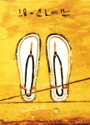 La vestimenta de los pueblos varía de acuerdo a múltiples factores: características orográficas y climáticas, características antropológicas, pautas culturales, etc. Todos los pueblos del mundo desarrollaron diversos tipos de calzado que a su vez se manifiestaron en una multiplicidad de modelos que respondieron a necesidades propias. El egipcio vivía en un medio ambiente peculiar: desiertos, mesetas pedregosas, marismas y lagunas. Era caminante por excelencia, le era más cómodo ir descalzo, salvo en desierto puesto que la arena levanta mucho la temperatura y lastima los pies. En el contexto cultural, el calzado puede ser doméstico y ceremonial. Se usa en determinados situaciones, y por ciertas personas. Básicamente una sandalia es un calzado consistente de una suela, de cuyo extremo parte la traba que pasa entre los dos primeros dedos y se une al empeine por dos tiras que sostienen la garganta del pie. Las sandalias eran conocidas desde la prehistoria, pero en el caso de Egipto se las usaba en ocasiones especiales. La mayor parte de la indumentaria fue hallada en las tumbas. Sabemos también como se vestían a través de relieves, esculturas o pinturas, pero generalmente vemos al rey y a la familia real, los funcionarios o la elite. Nuestra visión a través de la iconografía, es, en consecuencia, parcial. Acerca del uso y significación de la sandalia En egipcio "sandalia" se vinculaba a las siguientes palabras: tbt, tbwy (Urk IV, 1952,5), tbti, tbw ( "fabricante de sandalias" ), tbi (verbo 'estar calzado'), tbwt ( "sandalias" ), Flk 304. Hay especificación de los materiales sobre todo en LM 125 en donde se lee hdty ( "sandalias blancas" ) (Flk. 181), y también de color si se trata de sandalias blancas o negras (hd es blanco y km es negro) implica si es de uso cotidiano (de colores) o ritual (blanco). Asimismo se las puede designar por la forma, o por la etnia que la calza, caso nhsi ( "nubias" ). Había diferentes tipos de sandalias según se trate de hombres, mujeres, o niños. Algunos autores especularon con la idea de que la forma de la sandalia recuerda al logograma "anj", tal fue el caso de Alan Gardiner quien había pensado que el diseño de la sandalia simbolizaba al logograma anj y Schäfer por ende lo comprendió como "vida". La relación (inexistente) entre el anj y la sandalia fue establecida por Bernhard Grdseloff en 1941 (Nota: LÄ pg. 380, nota 9). La sandalia se vincula más al término rwd (TP 443) ( "próspero" ) (Flk 148) y sfh ( "purificar" ) (Flk, 225) Los ejemplares de sandalias más antiguos son de la I dinastía, en Abidos: por ejemplo, las etiquetas hechas en marfil, madera o hueso se usaban para identificar objetos del equipo funerario, una de las más hermosas perteneció a Den, y su destino fue estar atadas a un par de sandalias, en el reverso está dibujado el motivo de las sandalias del rey y del otro una escena en la que el rey está descargando la maza sobre el enemigo (alto: 4,5 cm, Abidos, ca. -3000) En las tumbas del Reino Arcaico se han encontrado "modelos" de sandalias. Decimos "modelos" porque se toma en cuenta el material y la forma, no por las proporciones de la misma, es decir, no son objetos utilitarios sino votivos. Una de ellas es un modelo de 7 cm de largo tallada en marfil de elefante con dibujos rojos y perforación, se constituye en el objeto más antiguo representando a una sandalia (Nota: W.M.Flinders Petrie, Diospolis Parva, EEF 20 , London 1901, pg. 22 lámina X Nro. 19) otra fue realizada en madera (Nota: W.M.Flinders Petrie, Deshasheh, EEF 15, London 1898, pg. 20, lámina 34). En el Reino Medio encontramos "modelos" de sandalias hechas en madera pintada de blanco. Los egipcios eran muy limpios y atendían con esmero su cuerpo y su ropa. Tenían pedicuros que les embellecían los pies. En la vida cotidiana el hombre común iba descalzo y solo en alguna ocasión especial usaba sandalias. Las sandalias comunes o para la vida cotidiana se hacían de papiro (Cyperus papyrus) y también de de hojas de palmera datilera (Nota: A. Lucas Ancient Egyptian Material and Industries, London 1962, pg. 137.) también con cuero, madera con pintura blanca, palmera dum, diferentes plantas gramíneas y metales preciosos. Al parecer, para los egipcios las sandalias eran un bien preciado. Así, Uni, quien había sido nombrado comandante en jefe del ejército, relata: "Sin embargo, yo fui quien los organicé, a pesar de que mi cargo era el de Jefe de los Terratenientes del Faraón, y quien aseguró el buen equilibrio de la situación, de manera que ninguno de ellos tomó panes ni sandalias a los que se hallaban en el camino, de manera de que ninguno de ellos tomó vestidos en ninguna ciudad, de manera que ninguno de ellos quitó sobras a nadie" (Urk. I, 102) ( Nota: Adriaan de Buck, Egyptian Readingbook, Vol. I) Cuando tenían que ir a algún sitio llevaban sus sandalias en la mano o las ataban al extremo de un bastón y se calzaban cuando llegaban a destino. Hay que tener muy en cuenta la distinción entre un calzado de uso cotidiano y otro hecho para el ceremonial o la funebria. En el ámbito funerario ponían especial atención al embalsamamiento y todo el equipo que necesitaba el difunto para una vida exitosa en el Mas allá. En este contexto se insertan los sacerdotes y los preceptos que debían cumplir. "Llevan los sacerdotes solamente vestido de lino y calzado de papiro y no les está permitido ponerse otro vestido ni otro calzado"(Herodoto II: 37) Asimismo, la sandalia encerraba en sí la noción de prosperidad, según el testimonio de Herodoto: "Los quemmitas cuentan que muchas veces se les aparece Perseo por la comarca, y muchas veces en su templo, que se encuentra la sandalia que ha calzado, tamana de dos codos, y que cuando la sandalia ha aparecido, todo Egipto prospera" (Herodoto II:91). Las sandalias blancas jugaban un rol central en el culto funerario como símbolo de pureza, puesto que el difunto se tenía que aproximar a Osir