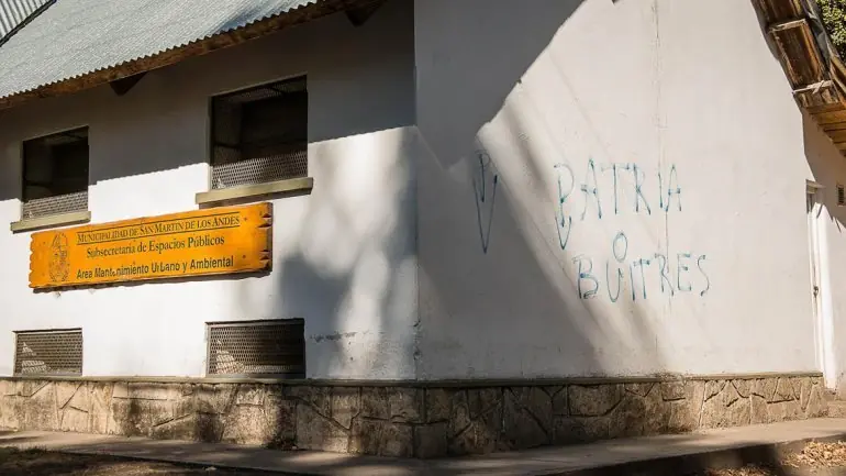 Agarraron in fraganti a un concejal mientras pintaba un graffiti un edificio público Un concejal del FpV de San Martín de los Andes fue encontrado "in fraganti" cuando realizaba un graffiti en un edificio municipal. El funcionario escribió "Patria o buitres" en la pared de la Subsecretaría de Espacios Públicos. La situación fue denunciada por los vecinos y el edil obtuvo una contravención de Guardias Ambientales en el Juzgado de Faltas. Además, los vecinos no descartan la posibilidad de presentar una denuncia contra el concejal por su "actitud delictiva", al estar pintando un edificio público y dañando la propiedad ajena. Desde el Concejo Deliberante local también manifestaron la posibilidad de sancionar este tipo de actitud. Que mas se puede esperar de un K... Deja puntos.