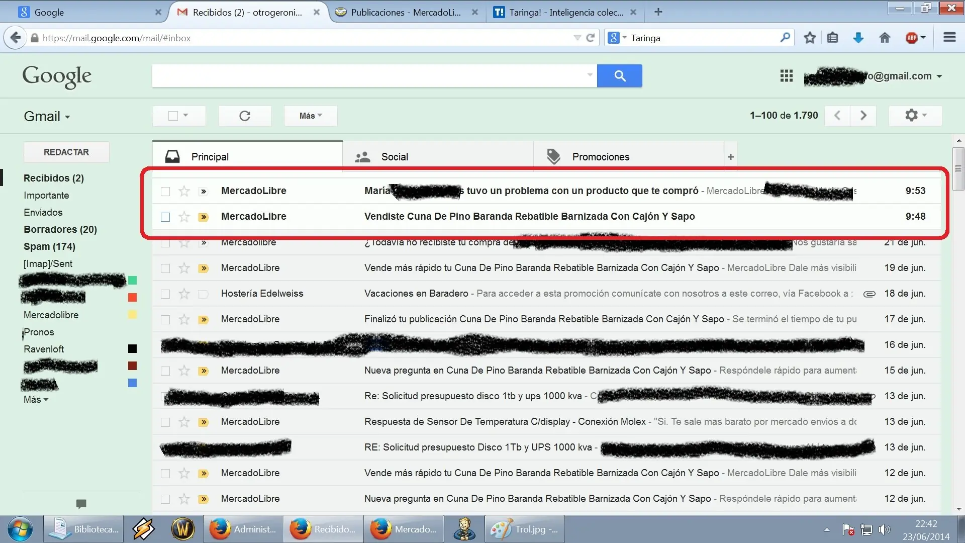 Que tal. Soy de vender cosas por Mercadolibre y siempre aparece algún usuario nuevo que pica en "Comprar" y no quería comprar o cosas asi, y hay que explicarle como viene la mano, que averigüe si hay stock, que pregunte todas sus dudas y algun consejo de ese caso particular... y después todo bien, se haga la compra o no... Hoy por ejemplo tenía una cuna sencilla en venta. Me levanté temprano y fuí a laburar; cuando vuelvo a mi casa a eso de las 20.00 hs me encuentro con esto: Tenía un reclamo de ML!! Es la primera vez que me inician un reclamo!!! Miré bien los horarios de los mails porque no entendía bien que pasaba... Si, tal cual lo ven... me "Compró" y a los 5 min me inició el reclamo!!! Ahhhhhhh bueno... 5 min de furia y a iniciar un reclamo!!!! Ni los mohicanos se calentaban tan rápido... Yo, como buen padre primerizo estaba viendo con mi pequeño Yo Gabba Gabba!, asi que andaba re flasheado y le contesté esto: Estimada Xxxxxxxx: compró mi cuna a las 9:48 y me inició un reclamo a las 9:53 porque no se pudo comunicar a mi número fijo. No me llamó a mi celular ni me envió ningún mail o sms tampoco por lo que este reclamo es su agresiva manera de presentarse.Yo sé que cinco minutos es mucho tiempo, pero no llegué a atender porque estaba teniendo relaciones sexuales con mi señora y no nos cuidamos, por lo que pienso esperar unos días y hacerle un Evatest. Si da positivo prefiero no vender la cuna. Saludos. Y ahora no se la vendo ni loco. Esta gente capaz te clava un Negativo porque no le gustó el olor de la madera... Saludos y si hay novedades amplío el post!