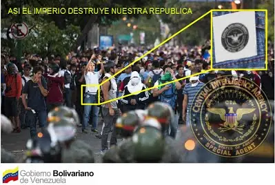 Hola a todos, me pasaba por algunos post, todo normal hasta que encontre algo increiblemente estupido pero estupido de niño que falla un examen de una pregunta con -100000 puntos. Bien primero que nada quiero dejar estas fotos Bien como podemos ver hay agentes de la CIA(Centro Increíble Anal). Pues bien ya podemos ver al supuesto agente de CIA ayudando a los estudiantes y gracias al sebin.... Pues bien si tiene un coeficiente intelectual mayor que el de un simio, te abrías dado cuenta de que es photoshop(Si ese no es el caso el cerebro lo tienes lavado) y ahora les mostrare las razones obvias: 1) Un agente secreto nunca revela que el es un agente secreto, así que si yo fuera de la cia no cargara mi identificación, especialmente si "Me enviaran a otro país para supuesta mente des estabilizarlo". Y ademas.¿Que esta haciendo ese maligno reptiloide de la cia? Debería estar haciendo misiones tipo call of duty o infiltrándose en el gobierno robar documentos. Es triste que los mismos del SEBIN que son una organización de inteligencia venezolana ni siquiera sepan que otra organización de inteligencia no mandaría a un agente a marchar con personas, ese asignamiento seria uno muy mediocre si me lo preguntas a mi Pd y si era un agente de la cia: porque no lo han arrestado todavia ya tiene su cara, su ID que mas esperan agarren a ese maldito!(Si es que en verdad es un agente de la cia) 2)El gobierno es como una suegra drogada con cocaina: Es paranioca y desconfia a simpre de la misma persona(En este caso de EEUU y tampoco simpatizo a EEUU lo voy a dejar claro pero esta obsecion es muy absurda!). Lo que digo es que el gobierno piensa que nos están infiltrando, desestabilizando, etc. Una simple imagen no dice nada, si logran capturar a un agente de la cia, pues bien les creería. 3)Se nota horriblemente que es photoshop! Primero tecnología tipo csi no existe para ver una foto asi de cerca y que tenga mejor calidad. Segundo cualquier pendejo lo puede hacer miren esta mierda lo hice en 2 min minimo XD. Bueno gracias por pasarse por este post