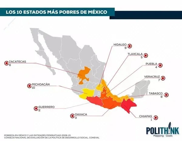 México sin duda es un país donde hay “varios Méxicos”, hay estados que tienen un Producto Interno Bruto similar a naciones como Corea del Sur o Polonia, mientras que los más pobres, están al nivel de Irak. También hay municipios que en calidad y nivel de vida se pueden comparar con zonas de Estados Unidos y Alemania. (Curioso que Oaxaca, uno de los estados más pobres, tenga dos de los municipios más ricos de México) Los municipios con menor nivel de desarrollo humano - Coicoyán de las flores / Oaxaca. - Batopilas / Chihuahua. - Cochoapa el Grande / Guerrero. En 2006, de acuerdo a un documento del Consejo Nacional de Población, fue considerado como el municipio más pobre de México, ocupando el primer lugar en rezago social y en marginación en el país. - Metlatónoc / Guerrero. Localizado en el sureste de México. Su población pertenece mayoritariamente a la etnia mixteca, y se trata del segundo municipio más pobre de la República Mexicana. Tiene un IDH muy similar al de países como Benin, Costa de Marfi l, Guinea y Tanzania. Estos municipios pobres son zonas muy poco pobladas y carentes de algún camino o carretera importante. Hay desde niños que mueren por enfermedades curables en cualquier otra parte, hasta caciques asesinos, alcoholismo, abandono, y una desconexión total con la realidad del resto del país. Muchas de estas personas jamás han visitado una ciudad, un hospital moderno y en algunos casos ni siquiera viajado a alguna población importante de su estado. Viven a cinco o seis horas de viaje en brechas o caminos que en las lluvias se enlodan o simplemente desaparecen. ¿Tienen remedio? Probablemente Una opción sería desarrollar atractivos turísticos, etnográficos y ecológicos de sus zonas para aprovecharlos e invertir las ganancias en mayor desarrollo de escuelas, caminos y micro empresas. En estos casos propondría los micro créditos y mas difusión a las becas del Programa Oportunidades que tan buenos resultados ha dado en el resto del país. Son municipios con muy poca población, es cierto, y en muchos casos tal vez sería mejor un re asentamiento, cosa que se debe hacer con cuidado. Resulta interesante ver que las zonas mas pobladas y urbanizadas del país también son las mas avanzadas. Así que tenemos a los dos Méxicos contrastados.