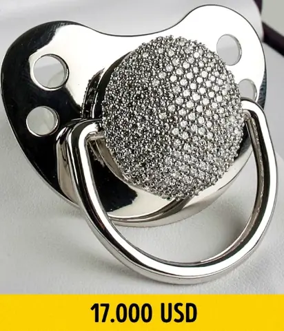 Chupón de diamantes El chupón más caro en el mundo está hecho de silicón, y su agarradera, de oro blanco con 280 diamantes incrustados. Esta cosita vale tan solo 17 mil dólares. iPhone de oro con diamantes No solo es un iPhone 6, sino un smartphone VIP, cubierto de oro o platino y con un diamante incrustado. El valor estimado es de 48 millones de dólares. Sin comentarios. Cama decorada con oro y piedras preciosas Esta cama de lujo de Stuart Hughes vale 6,3 millones de dólares. El armazón de la cama está hecho de las mejores variedades de fresnos, castaños y cerezos. Todo esto está decorado con 107 kilos (!) de oro de 24 quilates, así como también de diamantes y zafiros. ¿Qué soñarías en una cama así? Aspiradora con cristales Swarovski No por nada esta aspiradora está en el Libro Guinness de los Récords: es la más cara y brillante del mundo. Para su decoración, fueron usados 3730 cristales Swarovski. Como resultado, su precio es de 20 mil dólares. Es difícil imaginar cómo es posible limpiar la casa con algo así. Bicicleta dorada La bicicleta está cubierta totalmente de oro de 24 quilates y cuesta tan solo 400 mil dólares. Por cierto, el asiento está tapizado de gamuza suave, y la bicicleta está adornada con diamantes. Claro que dejar una bici como esta en el patio sería una terrible idea, incluso si tienes el mejor candado del mundo. Paraguas de piel de cocodrilo El paraguas más caro del mundo, hecho de piel de cocodrilo, te costaría 5 mil dólares. Este accesorio es producido por la marca joven Billionaire Couture, fundada por el millonario italiano Flavio Briatore y el diseñador Angelo Galasso. Maleta con ruedas eléctricas Esta simpática maleta cuesta 20 mil dólares. Está hecha de los materiales más exóticos: crin, ébano, magnesio, aluminio, titanio, fibra de carbono, tela y diversos tipos de piel. Además, en las ruedas de la maleta están integrados los electromotores. Para arrancarlos, debes primero inclinar la maleta y jalar su mango, la maleta se moverá hacia donde está inclinado el mango. Agujetas de oro Puedes conseguir las agujetas de oro de la marca Mr Kennedy en 19 mil dólares. El precio incluye la entrega a domicilio de lujo: el repartidor te las lleva a tu casa.