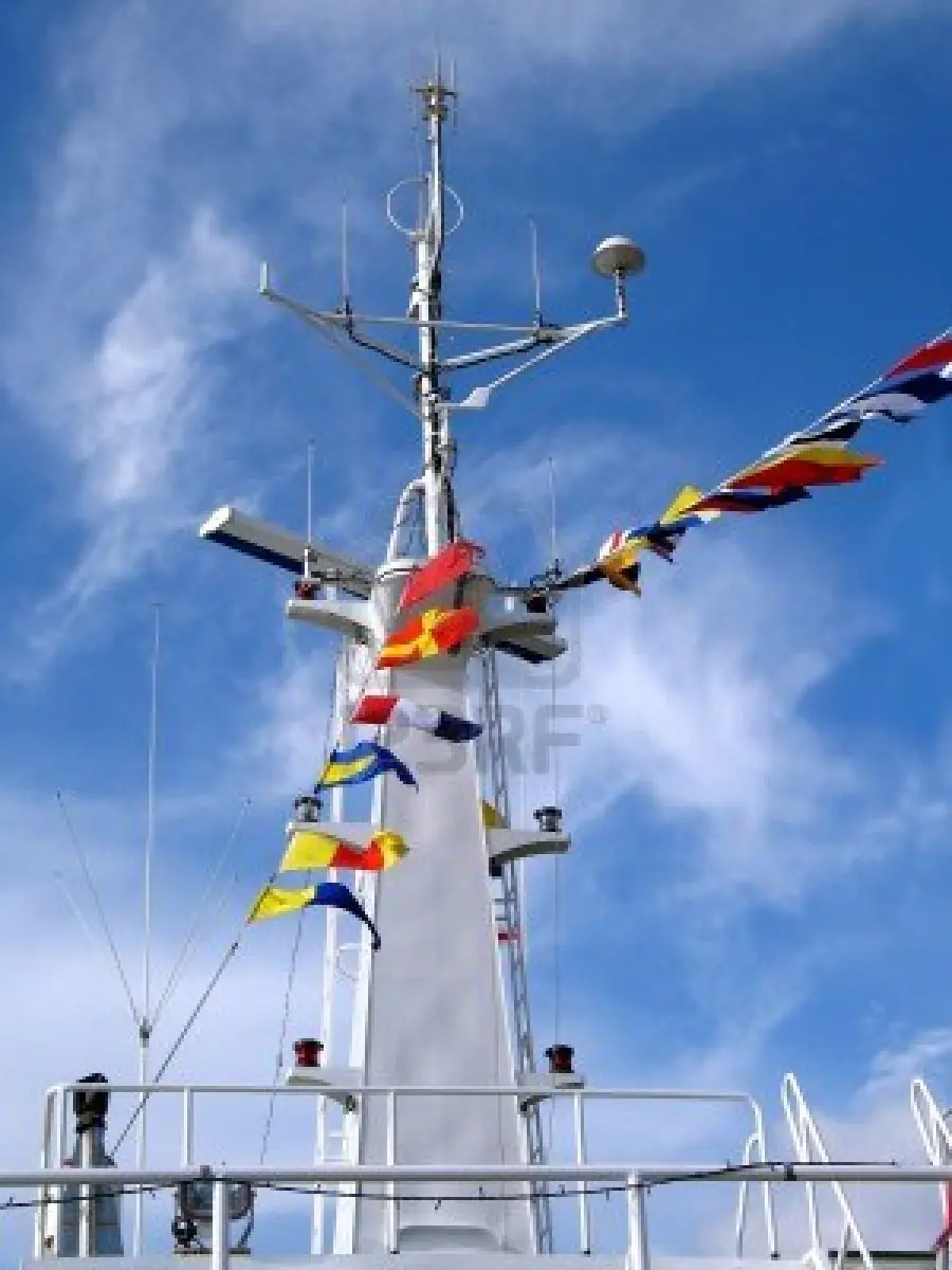 Código internacional de Señales Maritimas Las banderas de señales se utilizan en la navegación marítima para transmitir mensajes segun el Código internacional de señales de la OMI (Organización Marítima Internacional), ya sea entre dos o más barcos, o entre un barco y la tierra o el puerto, y en las regatas de vela según el Reglamento de Regatas a Vela. A tal efecto existen banderas de diferentes formas y colores, de las cuales cada una representa una letra del alfabeto internacional, así como los números del 1 al 0. Cuando un barco necesita transmitir un mensaje consistente en una o varias palabras, o números, iza en el mástil delantero las banderas que representan las letras y números del mensaje, alineadas de arriba hacia abajo. Si el mensaje es más largo, se repetirá la operación con nuevas banderas. También se utilizan las banderas individualmente o en combinaciones de dos, tres o cuatro, en cuyo caso tienen un significado determinado según un código internacionalmente vigente. Desde que existe la radio, el uso de las banderas de señales para transmitir mensajes ha disminuido notablemente. Sin embargo, se siguen utilizando de forma generalizada las banderas individuales o en combinaciones de dos, para señalizar un aviso determinado. Por su forma, una bandera se llama cuadra cuando es rectangular, corneta si remata en dos puntas en el lado opuesto a la vaina, y gallardete si es triangular. El Código Internacional consta de veintiseis banderas alfabéticas, diez gallardetes numéricos, tres gallardetes repetidores y un gallardete característico. Debido a que no todos los colores son fácilmente distinguibles en el mar, se utilizan sólo el rojo, azul, amarillo, negro y blanco. Lista de Banderas --- A --- Tengo un buzo sumergido. Manténgase alejado y reduzca velocidad. --- B --- Estoy cargando, descargando o transportando mercancías peligrosas. --- C --- Afirmativo. --- D --- Maniobro con dificultad. Manténgase alejado. --- E --- Estoy virando a estribor. --- F --- Tengo avería. Comuníquese conmigo. --- G --- Necesito un práctico. --- H --- Tengo un práctico a bordo --- I --- Estoy virando a babor. --- J --- Tengo un incendio y llevo mercancías peligrosas. Manténgase alejado. --- K --- Deseo comunicarme con usted. --- L --- Detenga su barco inmediatamente. --- M --- Mi barco está parado y no se pone en marcha. --- N --- Negativo. --- O --- Hombre al agua. --- P --- En puerto: Todos los hombres a bordo. El barco se hace a la mar. --- Q --- Mi barco está “sano”. Solicito libre navegación. --- R --- Recibido. --- S --- Estoy dando marcha atrás. --- T --- Barcos de pesca: Estoy pescando al arrastre en pareja. Manténgase alejado. --- U --- Se dirige usted hacia un peligro. --- V --- Necesito auxilio. --- W --- Necesito asistencia médica. --- X --- Suspenda sus maniobras y preste atención a mis señales. --- Y --- Estoy maniobrando hacia atrás para fijar el ancla. --- Z --- Necesito un remolcador. Banderas Combinadas Los mensajes mas urgentes de emergencia, de peligro, de aviso o de catastrofe se comunican con una sola letra. Ademas puede agruparse en señales de dos letras, tres (para describir cuestiones medicas siendo la M la primera letra de cada señal) o cuatro (la primera o las dos primeras letras indican la nacionalidad del buque). Algunos ejemplos son: NC ----> Estoy en peligro, necesito ayuda inmediata! JW ----> Tengo vía de agua. AN ----> Necesito médico. BR ----> Necesito helicóptero. CZ ----> Maniobre para dar socaire al bote o balsa. GW ----> Hombre al agua. Ruego tome las medidas necesarias para recogerlo. IR ----> Estoy efectuando trabajos submarinos. Tengo buzo sumergido. Manténgase alejado. Gallardetes Numericos Se utilizan para la transmision de numeros. En el caso de numeros de varias cifras, se utilizan varios de estos gallardetes izados en el mastil de arriba hacia abajo. --- 0 --- Representa el Numero 0 --- 1 --- Representa el Numero 1 --- 2 --- Representa el Numero 2 --- 3 --- Representa el Numero 3 --- 4 --- Representa el Numero 4 --- 5 --- Representa el Numero 5 --- 6 --- Representa el Numero 6 --- 7 --- Representa el Numero 7 --- 8 --- Representa el Numero 8 --- 9 --- Representa el Numero 9 El Semaforo El semáforo o sistema de transmisión y recepción de mensajes de forma manual empleando banderas, es un antiguo método de comunicación visual a corta distancia muy simple, que emplean fundamentalmente las marinas de guerra de diferentes países para comunicarse entre un barco y tierra, entre dos barcos, o entre dos puntos fijos en tierra. Para transmitir los mensajes se utilizan dos banderas cuadradas, de iguales medidas y con los mismos colores (amarillo y rojo), ubicados diagonalmente. Esas banderas corresponden, a su vez, a la letra "O" del Código Internacional de Banderas de Señales Marítimas. Para representar cada letra, la persona encargada de enviar los mensajes se sitúa de frente al receptor (que también puede actuar como transmisor para contestar los mensajes) y mueve ambas banderas con los brazos describiendo círculos.. Las banderas cruzadas abajo indican el inicio y final de cada palabra transmitida. La forma en que se sitúa la bandera en cada uno de los movimientos que se realizan, corresponden a una letra determinada del alfabeto o a un número, tal como se puede ver a continuación. !! Saludos y espero que les haya gustado !!