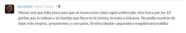 Todo marchaba normalmente en la taringa de la noche. Terminaba de cenar y aproveche para mirar cómo iban los comentarios en mi post sobre el último spot de Guillermo Moreno. En los comentarios apareceia un tal lucanete hasta ahí todo normal, lo típico en un tema político en Taringa pero aparece duar1986 duro no? era obvio que no quería debatir ideas, iba directo al ataque personal, y lucanete no se echó atrás, responde lucanete promete acabar con la contienda, pero luca1986 no se siente satisfecho y arremete con otro picante comentario ignorando sus propias palabras, lucanete no se calla nada