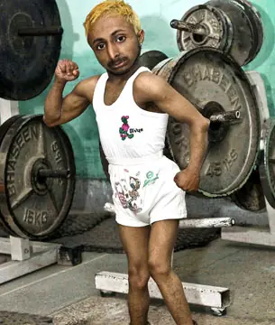 EL ENANO MÁS FUERTE DEL MUNDO Se llama Aditya Romeo Dev y es de la India. Pesa apenas nueve kilos y puede levantar hasta un kilo y medio. Se entrena como un deportista normal y dice que es “el enano más fortachón del mundo“. “Siempre quise ser fisicoculturista. Hace dos años que lo estoy intentando y hoy en día pienso que debo de ser el enano más fortachón del mundo“, desafía. Mide 80 centímetros, pesa nueve kilos y puede levantar hasta un kilo y medio. Pero sus limitaciones físicas jamás significaron un obstáculo. “Mi tamaño nunca me detuvo. Entreno con pesas, hago aerobia y bailo. Las personas siempre se alegran al verme. Soy el invitado de muchos programas de TV para bailar en el escenario”, le dijo al diario Daily Mail. Su entrenador se llama Ranjeet Pal (su compañero en la foto), tiene un físico convencional y define a su pupilo como un obsesivo de las pesas, aunque aclara: “Debido a su pequeño tamaño, no le asigné ejercicios duros. Pero Romeo entrena más o menos lo mismo que cualquier otra persona, y es mucho más decidido”. FUENTE http://www.noticias24.com/gente/noticia/2995/el-enano-fuerte-del-mundo/ link: http://www.videos-star.com/watch.php?video=HA-mHjSXZlc