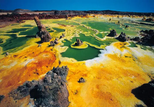 El cuerno de África se resquebraja. El mar lo separará del resto del continente La región tembló, violentos terremotos sacudieron la tierra, los volcanes escupieron su lava y profundas grietas se abrieron en el suelo. El 26 de septiembre de 2005, el geólogo Dereje Ayalew y su equipo de la Universidad de Adís Abeba asistieron a un fenómeno que cambiará la fisionomía del planeta: la aparición de un nuevo océano y un “continente” más sobre la Tierra. Constataban así, Ayalew y sus investigadores, un suceso que habían registrado los satélites. Una franja de 60 kilómetros de longitud se abría en el triángulo de Afar, entre Etiopía, Eritrea y Yibuti, en lo que terminará siendo, dentro de un millón de años la separación del cuerno de África del resto del continente y el avance del mar Rojo sobre esta área. Los datos de geólogos y geofísicos dicen que se produce con una rapidez inusitada, sobre todo a raíz de los movimientos sísmicos en la zona que Tim Wright, de la Universidad de Oxford, medidos con precisión gracias al satélite Envisat de la Agencia Espacial Europea. Así ha sido posible conocer cómo se inició esta increíble transformación geológica. Deprisa, deprisa Hace 30 millones de años, en la región se desencadenó una intensa actividad volcánica y tectónica. África y Arabia, todavía unidas, comenzaron a separarse y aún hoy siguen haciéndolo a razón de 1-2 cm/año. Consecuencia de eso fue la creación de dos fallas que más tarde dieron lugar al mar Rojo y al golfo de Adén. Ahora, en la zona debilitada que se abre en medio de la placa tectónica, el magma emerge y, además de formar el suelo basáltico del futuro océano, origina explosiones volcánicas, erupciones y ríos de lava en las zonas de ruptura de la superficie. Son esas fisuras que Dereje Ayalew observó, las que engulleron a decenas de animales que tardaron demasiado en huir. No hay dos sin tres Cerca del lago Victoria, en el sur, se abre una tercera falla que completa el triángulo afectado por esta transformación geológica. Algunas de las zonas de fractura tienen hasta 100 metros de profundidad. En total, son casi 300 kilómetros de anchura del triángulo de Afar los que se están hundiendo a un ritmo de 16 mm/año. El desierto de Danakil, que alcanza los 60ºC, es el más afectado por el proceso. Ya está a 160 metros por debajo del nivel del mar, y será el futuro océano cuando las aguas del mar Rojo logren invadir la zona. De momento, el paisaje de la región está virando a una estética surrealista. El agua de las lluvias de las zonas etíopes se filtra a través de numerosas fisuras y, al entrar en contacto con el subsuelo magmático, hierve y vuelve al exterior convertida en fumarolas de ácidos colores. ¿Un cuadro de desolación? Sí, pero no la suficiente como para que la tribu que da nombre a la zona, los afar, contemplen a diario cómo las divinidades hacen diabluras en su tierra. fuente:http://www.quo.es/ciencia/naturaleza/ha_nacido_un_oceano/ha_nacido_un_oceano