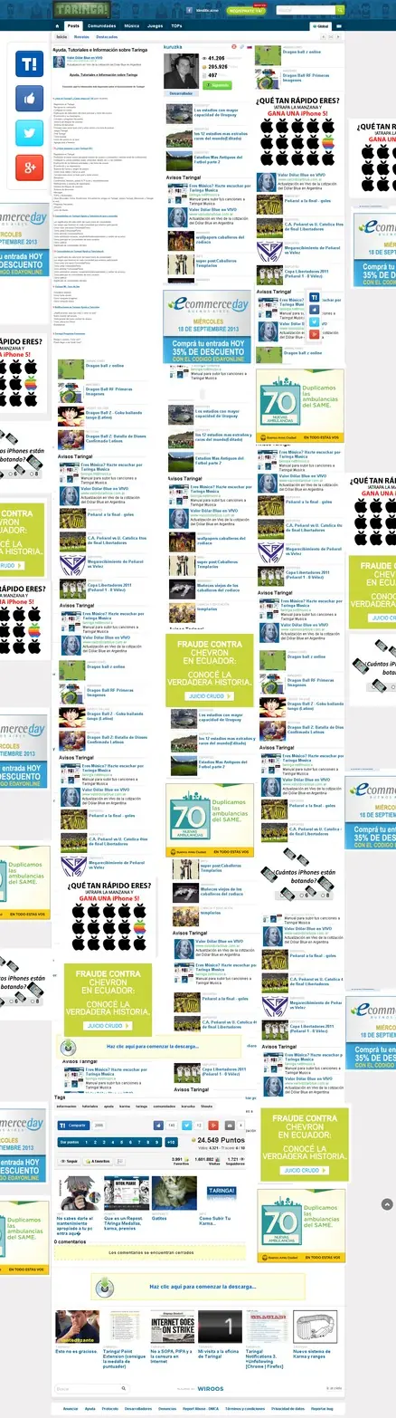 Buenas... no se si habrán notado que Taringa tiene cada vez mas "boludeces" por todos lados... personalmente, yo la veo DEMASIADO cargada.... parece yahoo por momentos... Así que adelantándonos a lo que se vendrá, este seria mas o menos el futuro de Taringa si herni y manolo no se dejan de joder con agregarle modulos y frames al sitio... A muchos sitios les pasa... es como las minas que son adictas a la cirugía y terminan siendo un desastre... bueno, mismo caso....