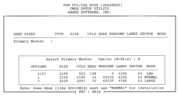 Autoconfiguración de la BIOS Este apartado comprende diversas opciones que se proporcionan para facilitar la configuración de la BIOS, de las cuales las más comunes son: * LOAD BIOS DEFAULTS: carga una serie de valores por defecto con poca o nula optimización, generalmente útiles para volver a una posición de partida segura y resolver problemas observados al arrancar. * LOAD SYSTEM DEFAULTS: una opción cuyos efectos varían de unas BIOS a otras. En unos casos carga unos valores por defecto seguros (como LOAD BIOS DEFAULTS), en otros carga unos valores ya optimizados para conseguir un rendimiento adecuado, o incluso puede servir para cargar la última serie de valores guardados por el usuario. * LOAD TURBO DEFAULTS: carga los valores que estima óptimos para incrementar el rendimiento. En cualquier caso, debe tenerse en cuenta que los cambios no suelen ser guardados automáticamente, sino que deben confirmarse al salir de la BIOS. Otras utilidades Las BIOS pueden hacer todavía más cosas, dependiendo del modelo en concreto; algunas de las más usuales están a continuación. Autodetección de discos duros IDE Esta opción permite detectar los discos duros que están conectados al sistema, así como su configuración. Resulta muy útil para simplificar la tarea de instalar un disco nuevo, así como cuando los datos del disco no están completos o no parecen funcionar en nuestra BIOS. Pantallazo mostrando la pantalla ''IDE HDD Autodetection'' de una BIOS clásica Su uso es sencillísimo: se entra en este menú y se va detectando cada uno de los cuatro posibles dispositivos IDE. Apunte las opciones que le aparezcan y pruebe a usarlas; recuerde usar el modo LBA para discos de más de 528 MB. Tenga en cuenta que muchas veces sólo por entrar en esta utilidad se alteran automáticamente los valores de configuración del disco, así que después de salir de ella compruebe si los cambios corresponden a los que quería realizar. Control por password Es decir, por una clave de acceso en forma de palabra secreta que sólo conozca usted. Tenga en cuenta que si la olvida se verá en graves problemas, hasta el punto de tener que borrar toda la BIOS para poder volver a usar el ordenador, así que apúntela en algún lugar seguro. Se suele poder seleccionar, bien en un menú específico o en las BIOS Features, entre tener que introducir la clave cada vez que se arranca el ordenador o sólo cuando se van a cambiar datos de la BIOS. Lo primero es el método ideal para seguridad, y además es gratis; lo segundo es útil cuando gente inexperta pero manazas tiene acceso al ordenador (por ejemplo, su sobrinito el tocalotodo). Formateo de disco duro a bajo nivel O, en inglés, HDD Low Level Format. Se trata de un formateo mucho más intenso que el normal; no sólo elimina los datos, sino que reorganiza la propia estructura del disco. Generalmente sólo debe usarse cuando el disco está fallando muy a menudo o ha sido infectado por un virus tremendamente resistente, y aun así no resulta recomendable. Si será duro, que realizarlo ¡suele ser motivo de pérdida de la garantía del disco duro! En fin, si se atreve, ármese con los datos de configuración del disco (cilindros, cabezas...) y rece por no tener que interrumpirlo por nada del mundo, cortes de luz incluidos. Antivirus No, no crea que con esta opción podrá ahorrarse el comprar uno de esos programas antivirus tan tristemente necesarios en los PC. En realidad, lo único que suele hacer esta opción (que en ocasiones tiene un menú propio y en otras se engloba bajo el Standard Setup, tal vez con el nombre de Virus Warning) es no permitir que se escriba sobre la tabla de particiones o el sector de arranque del disco duro, bien sólo durante el arranque o en cualquier momento, dependiendo del modelo concreto de BIOS. La idea es impedir que un virus destroce el disco duro sin darle oportunidad a cargar un disquete de arranque con un antivirus para desinfectar el sistema; no impedirá la infección, pero es una medida más de seguridad y gratis. Por cierto, puede ser necesario deshabilitar esta opción durante la instalación del sistema operativo o al formatear el disco duro, no sea que la BIOS crea que se trata de un ataque viral. Salir de la BIOS Pues es sencillo, pero revisémoslo para los que no entiendan inglés en absoluto. Generalmente existen dos opciones: * Save and Exit Setup: o bien Write to CMOS and Exit o algo similar; pues eso, grabar los cambios y salir, con lo cual se reinicia el equipo. Debería pedirle confirmación, en forma de "Y/N?" (Yes o No). * Exit Without Saving: o Do Not Write to CMOS and Exit o Discard Changes and Exit o similar; lo contrario, salir sin grabar los cambios. También debería pedir confirmación. Actualizar la BIOS La BIOS maneja temas tan críticos como el soporte de uno u otro microprocesador; además, como programa que es, no está exenta de fallos y se revisa periódicamente para eliminarlos o añadir nuevas funciones. Antiguamente, la única forma de actualizar una BIOS era extraer el chip de BIOS y sustituirlo por otro, lo cual no se lo recomiendo a nadie, tanto por las posibles incompatibilidades como por lo delicado y caro de la operación. Modernamente han aparecido BIOS que pueden modificarse con un simple programa software; se las denomina Flash-BIOS, y no son un invento desdeñable. Lo que es más, la existencia de una de estas BIOS o no debería ser argumento de peso a la hora de comprar una placa base, al menos entre los manitas informáticos. Tenga en cuenta que mantener un registro de BIOS actualizadas es un servicio que sólo ofrecen los grandes fabricantes de placas base... y aun así no siempre se puede encontrar la necesaria actualización. Vaya a Actualizar la BIOS para conocer los pasos concretos a seguir; eso sí, le aviso de que deberá asegurarse de que la operación de actualización no se interrumpe por nada del mundo, así que nada de hacer multitarea, meterle prisa o tocar el tec