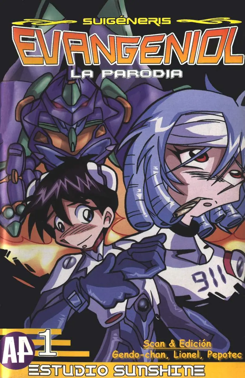 Suigeneris Evangeniol De Wikipedia, la enciclopedia libre Suigéneris Evangeniol es una historieta argentina en tono de parodia inspirada en el manga y anime Shinseiki Evangelion. Fue realizada por Sunshine Studios y publicada por A4 editora entre los años 2000 y 2001, constando en total de 5 números más un episodio especial editado como flip en el número 4 de la miniserie Dragon Fall OGT. Los guiones y el material adicional estaban escritos por Martin Ligori, mientras que los dibujos correspondían a Luciano Ligori aisitido por Franco Fasoli. La Historia Es el Año Dos Mil de nuestra era... O sea... Era nuestro año 2000. Un Metiorito se cayó en la Atlántida, un cacho más abajo del Marco Polo Sur. Así era que ocurría la castástrofe más grande del mundo, bueno... La segunda castástrofe más grande, tan segunda que se dio en llamar “El Segundo Infarto”. Dicen los que saben que ese día Eltodopoderoso se enteró de que el EvaTest Type || dio positivo, “¡Oh, No! ¡No, Otra Vez!” exclamó, y al caer en la cuenta de que iba a ser padre por segunda vez cayó infartado, tal como había ocurrido la primera. Desde ese día Eltodopoderoso anduvo un poquitito cabrero, tanto que se le dio por inundar un cachito La Tierra, bailar malambo en patas para generar terremotos, echarse un cloro en los sembrados más fértiles para arruinarlos, acabar con la mitad de la población humana mientras jugaba a los soldaditos simulando la guerra de Los Rebeldes contra El Imperio, y demás aberrantes sucesos que no nos atrevemos a comentar para que no nos empiecen a comparar con CrónicaTV. Sin embargo, hay un hecho que no podemos olvidar... Este... Eh... ‘ta madre, se me olvido... Los Episodios En la colección SuiGeneris Evangeniol, La Parodia (ISSN 1515-4483) 1. 1, Agosto 2000. 2. 2, Octubre 2000. 3. 3, Diciembre 2000. 4. 4, Febrero 2001. 5. 5, Noviembre 2001. En la colección Serie Lila #4 (ISSN 1515-1816) 1. 2 y 1/2, Noviembre 2000. Tomo 1 http://img488.imageshack.us/img488/3848/Evangeniol_N01_01.jpg http://img488.imageshack.us/img488/2918/Evangeniol_N01_02.jpg http://img488.imageshack.us/img488/534/Evangeniol_N01_03.jpg http://img488.imageshack.us/img488/9479/Evangeniol_N01_04.jpg http://img488.imageshack.us/img488/9144/Evangeniol_N01_05.jpg http://img488.imageshack.us/img488/4336/Evangeniol_N01_06.jpg http://img488.imageshack.us/img488/766/Evangeniol_N01_07.jpg http://img502.imageshack.us/img502/7441/evangenioln01083kw.jpg http://img502.imageshack.us/img502/4587/evangenioln01094sf.jpg http://img502.imageshack.us/img502/3528/evangenioln01102fa.jpg http://img502.imageshack.us/img502/2001/evangenioln01117vk.jpg http://img502.imageshack.us/img502/8650/evangenioln01124qy.jpg http://img488.imageshack.us/img488/3084/Evangeniol_N01_13.jpg http://img488.imageshack.us/img488/9520/Evangeniol_N01_14.jpg http://img488.imageshack.us/img488/9577/Evangeniol_N01_15.jpg http://img488.imageshack.us/img488/6982/Evangeniol_N01_16.jpg http://img488.imageshack.us/img488/8641/Evangeniol_N01_17.jpg http://img488.imageshack.us/img488/4504/Evangeniol_N01_18.jpg http://img488.imageshack.us/img488/9320/Evangeniol_N01_19.jpg http://img488.imageshack.us/img488/672/Evangeniol_N01_20.jpg http://img488.imageshack.us/img488/1079/Evangeniol_N01_21.jpg http://img488.imageshack.us/img488/8675/Evangeniol_N01_22.jpg http://img488.imageshack.us/img488/1900/Evangeniol_N01_23.jpg http://img488.imageshack.us/img488/5530/Evangeniol_N01_24.jpg http://img488.imageshack.us/img488/1421/Evangeniol_N01_25.jpg Tomo 2 http://mx.geocities.com/px_industries/Evangeniol02/Evangeniol_N02_01.jpg http://mx.geocities.com/px_industries/Evangeniol02/Evangeniol_N02_02.jpg http://mx.geocities.com/px_industries/Evangeniol02/Evangeniol_N02_03.jpg http://mx.geocities.com/px_industries/Evangeniol02/Evangeniol_N02_04.jpg http://mx.geocities.com/px_industries/Evangeniol02/Evangeniol_N02_05.jpg http://mx.geocities.com/px_industries/Evangeniol02/Evangeniol_N02_06.jpg http://mx.geocities.com/px_industries/Evangeniol02/Evangeniol_N02_07.jpg http://mx.geocities.com/px_industries/Evangeniol02/Evangeniol_N02_08.jpg http://mx.geocities.com/px_industries/Evangeniol02/Evangeniol_N02_09.jpg http://mx.geocities.com/px_industries/Evangeniol02/Evangeniol_N02_10.jpg http://mx.geocities.com/px_industries/Evangeniol02/Evangeniol_N02_11.jpg http://mx.geocities.com/px_industries/Evangeniol02/Evangeniol_N02_12.jpg http://mx.geocities.com/px_industries/Evangeniol02/Evangeniol_N02_13.jpg http://mx.geocities.com/px_industries/Evangeniol02/Evangeniol_N02_14.jpg http://mx.geocities.com/px_industries/Evangeniol02/Evangeniol_N02_15.jpg http://mx.geocities.com/px_industries/Evangeniol02/Evangeniol_N02_16.jpg http://mx.geocities.com/px_industries/Evangeniol02/Evangeniol_N02_17.jpg http://mx.geocities.com/px_industries/Evangeniol02/Evangeniol_N02_18.jpg http://mx.geocities.com/px_industries/Evangeniol02/Evangeniol_N02_19.jpg http://mx.geocities.com/px_industries/Evangeniol02/Evangeniol_N02_20.jpg http://mx.geocities.com/px_industries/Evangeniol02/Evangeniol_N02_21.jpg http://mx.geocities.com/px_industries/Evangeniol02/Evangeniol_N02_22.jpg http://mx.geocities.com/px_industries/Evangeniol02/Evangeniol_N02_23.jpg http://mx.geocities.com/px_industries/Evangeniol02/Evangeniol_N02_24.jpg http://mx.geocities.com/px_industries/Evangeniol02/Evangeniol_N02_25.jpg http://mx.geocities.com/px_industries/Evangeniol02/Evangeniol_N02_26.jpg ____________________________________________________________________________________________ Tomo 1 bittorrente Tomo 2 bittorrente