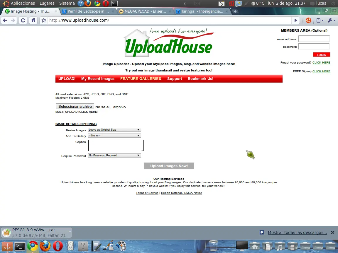 Ahora que Tinypic ha cerrado puertas en Argentina,muchos están buscando un buen servidor de imágenes. Este servidor no es muy conocido,pero es realmente genial. http://www.uploadhouse.com/ Tan sólo seleccionan el archivo que quieran subir y hacen click en "upload images now". También se pueden seleccionar muchos archivos a la vez: Bueno,eso es todo. Si te gusta la Ciencia Ficción, quizás quieras unirte a esta comunidad : Comunidad de Ciencia Ficción