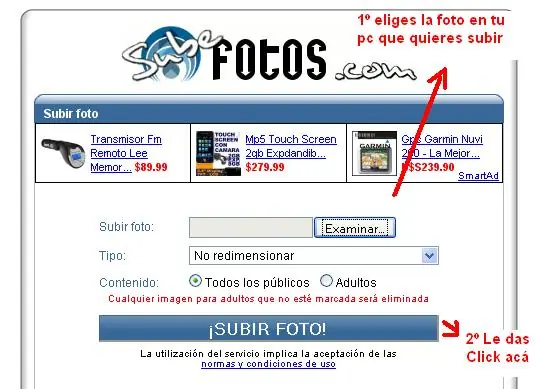 Hola Taringueros! Hoy les voy a enseñar a subir fotos desde tu pc a taringa: la cosa es muy secilla, miren les explico: Muchos se preguntan porque no se puede subir imagenes desde su ordenador a taringa. El tema es que T! Nos ofrece el sistema de links de imagen entonces primero lo que hay que hacer es subir la imagen a internet Una pagina sencilla para subir tus fotos a internet, y sobre todo, QUE ANDA EN TARINGA, es: http://www.subefotos.com/ Recomiendo que la imagen que van a subir no sea muy pesada y muy recomendado que este en formato .JPG Bueno como ven es simple Recuerden: Primero deben subir la foto a internet Bueno espero que les sirva y si quieren algun tutorial mas o no entienden algo avisen! Lekbar99