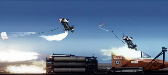 Antes de que el avión F-35 Lightning pueda comenzar a ser utilizado, hay que probar que funcione el asiento de eyección para que en caso de accidente el piloto pueda salvarse. El F-35 es el primer avión supersónico capaz de despegar y aterrizar verticalmente, y BAE Systems está probando el asiento a una moderada (!) velocidad de 965 km/h. El sistema de ejección incluye un pack de cohetes debajo del asiento, además de un “sistema de separación estructural” de emergencia, que es un pequeño explosivo diseñado para hacer volar la tapa de la cabina para permitir que el piloto pueda salir volando sin problemas. Tres segundos después de que se despega la cubierta, el piloto sale disparado del avión y comienza a descender sano y salvo a tierra con un paracaídas. No es posible probar el asiento usando un F-35 en vuelo – si funciona, genial, pero después ¿quién aterriza el avión si el piloto salió eyectado? Sería una prueba bastante cara si hay que estrellar todo el avión con cada test. Así que la alternativa es poner una parte de un F-35 sobre unos rieles y hacerlos correr a 965 km/h para luego probar el asiento, así: ¿Lo probarías? link: http://www.youtube.com/watch?v=y6lvh82oWIw fuente