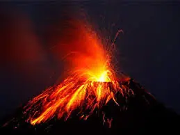 Una erupción volcánica es una emisión violenta en la superficie terrestre de materias procedentes del interior del volcán. Exceptuando los géiseres, que emiten agua caliente, y los volcanes de lodo, cuya materia, en gran parte orgánica, proviene de yacimientos de hidrocarburos relativamente cercanos a la superficie, las erupciones terrestres se deben a los volcanes. Las erupciones son consecuencia del aumento de la temperatura en el magma que se encuentra en el interior del manto terrestre. Esto ocasiona una erupción volcánica en la que se expulsa la lava hirviendo que se encontraba en el magma. Puede generar derretimiento de hielos y glaciares, los derrumbes, los aluviones, etc. Las erupciones también se caracterizan por otros factores: temperatura de la lava, su contenido de gases oclusos, estado del conducto volcánico (chimenea libre u obturada por materias sólidas, lago de lava que opone su empuje a la salida del magma del fondo, etc). Las erupciones volcánicas no obedecen a ninguna norma de periodicidad, y no ha sido posible descubrir un método para prevenirlas, aunque a veces vienen precedidas por sacudidas sísmicas y por la emisión de fumarolas. Su violencia se relaciona con la acidez de las lavas y con la riqueza de estas en gases oclusos. Estos alcanzan altas presiones y, cuando llegan a vencer la resistencia que encuentran, se escapan violentamente, dando lugar a una erupción explosiva. Por el contrario, una lava básica es mucho más fluida y opone escasa resistencia al desprendimiento de sus gases: las erupciones son entonces menos violentas y pueden revestir un carácter permanente. Tipos de erupciones magmáticas La combinación posible de los factores recién señalados entre sí explica la existencia de varios tipos de volcanes a los cuales corresponden erupciones características. En primer lugar conviene establecer una distinción entre la erupción puntual del magma por una chimenea, y la erupción lineal por una fisura del terreno que puede ser bastante larga. En este último caso se tiene un volcanismo lávico: las erupciones no son violentas y adoptan la forma de gigantescas efusiones de basaltos muy fluidos, cuyas coladas cubren grandes extensiones de terreno alrededor del volcán.