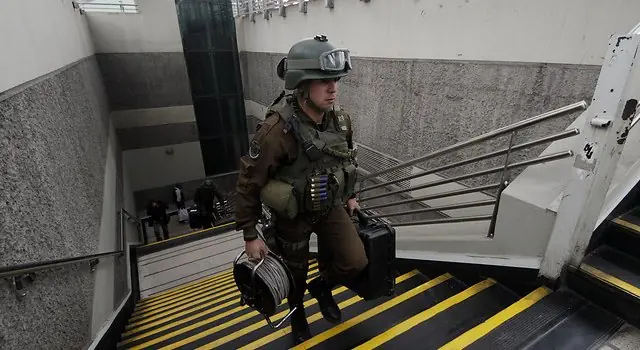 Explosión de bomba en metro de Santiago de Chile deja siete heridos Una fuerte explosión en la zona de locales del metro de Santiago dejó siete heridos este lunes en un hecho que el gobierno chileno condenó y calificó como un "acto terrorista". "Hasta el momento, siete personas se han registrado en centros de atención que están recibiendo atención médica", señaló a periodistas Mario Rozas, comandante de Comunicaciones de Carabineros. "Hasta el momento, siete personas se han registrado en centros de atención que están recibiendo atención médica", señaló a periodistas Mario Rozas, comandante de Comunicaciones de Carabineros. La explosión se produjo en el sector de locales de comida en pleno horario de almuerzo, y según las primeras informaciones citadas por la prensa, se trataría de un artefacto instalado en un basurero. "Personas inocentes han sido afectadas por este acto terrorista, el gobierno va a invocar la Ley Antiterrorista. Personas inocentes han sido afectadas por este acto condenable que merece una enérgica respuesta", indicó, por su parte, Alvaro Elizalde, portavoz de Gobierno. Los lesionados son cuatro mujeres, una de las cuales sufrió la amputaciones en sus extremidades, y tres hombres, entre ellos un ciudadano argentino, quien presentó lesiones en la zona abdominal, informó el Servicio de Emergencias. "Se me doblaron las piernas porque fue un ruido tremendo. A una señora se le cayó un piso de cemento encima. Dijeron que había personas desparramadas en el piso", dijo un testigo sin identificar al canal de noticias 24 horas. Los heridos "fueron derivadas a centros asistenciales, algunas que fractura expuesta y otras con problemas de síndrome acústico por la explosión", señaló a radio Cooperativa el comandante del cuerpo de bomberos de Santiago, Mauricio Repetto. La Policía inició las pericias para determinar el origen de este artefacto y sus características, y acordonó la estación de metro que se encuentra cerrada.