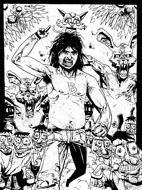 Ilustración estilo comic dedicado a El Bananero . Titulo: El Bananero en el País de las Ladillas. Personajes: El Bananero , la gata Isabel, Bananos (representan a los fans) y conejos violadores.Y ESTO FUE LO QUE PUSO EN FACE:Y AHORA ME DIJO QUE QUIERE QUE HAGAMOS UN PROYECTO JUNTOS !!! Y LA PUTA QUE ME PARIOOOOO !!!©Mazzartproductions.com