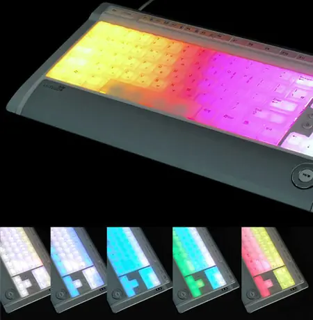 A estas alturas supongo que te sonará el teclado Optimus y su magnífico precio de venta al público multimillonario. Pues la marca Koreana Luxeed ha sacado al mercado este teclado en el que podremos elegir el color en que se iluminarán cada una de las teclas que componen el periférico. Para ello disponemos de un software muy completo en el que seleccionaremos una a una cada tecla y la gama de color que deseemos. ¿Utilidad? Poca o ninguna, pero que a los aficionados al modding seguro que gustará. El precio es algo caro, sin embargo extremadamente barato comparado con el inalcanzable Optimus Keyboard. Estará disponible en dos versiones, una blanca semitransparente que permite que las teclas queden iluminadas por completo, y otra negra en la que sólo la serigrafía de las teclas se ilumina. Su precio es de 127$ para el blanco y 134$ para el negro. Enlace: Luxeed Keyboard: www.luxeed.com