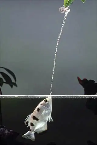 Tiene Todo Calculado El pez arquero, pequeña especie exótica muy común en los manglares y riberas de los océanos Índico y Pacífico, del norte de Australia y de Malasia, tiene un método de caza poco común y espectacular a la vez para conseguir los insectos que constituyen su alimento. Toxotes jaculatrix (su nombre científico) proyecta con fuerza por la boca un chorro de gotitas de agua hacia un insecto posado sobre una ramita o una hoja, incluso en vuelo, que lo derriba. Puede acertar a una presa hasta a dos metros de distancia, logro notable para un pez que mide unos 15 cm. El procedimiento consiste en aspirar el agua y contraer bruscamente sus opérculos y maxilares, lo que provoca la expulsión del líquido por un pequeño canal en la punta de su hocico. Pero eso no es todo, pues al estar sumergido, el pez arquero debe tener en cuenta el fenómeno de refracción, que hace que un objeto no sea percibido en su posición real fuera del agua, y antes de efectuar el “disparo” tiene que calcular muy bien la distancia y el ángulo correctos. Los investigadores han observado que la mayoría de los “tiros” los realiza con un ángulo de 70º a 80º, por lo que deducen que la precisión que obtiene proviene de un aprendizaje previo. Y por si todo esto fuera poco, Toxotes jaculatrix tiene la habilidad de elegir muy bien a sus víctimas, pues ataca únicamente a los insectos a los que hará caer en un lugar de cómodo acceso para él. Acá les dejo un video de este excéntrico pez link: http://www.videos-star.com/watch.php?video=D7lQyQ_Fbgc Fuente