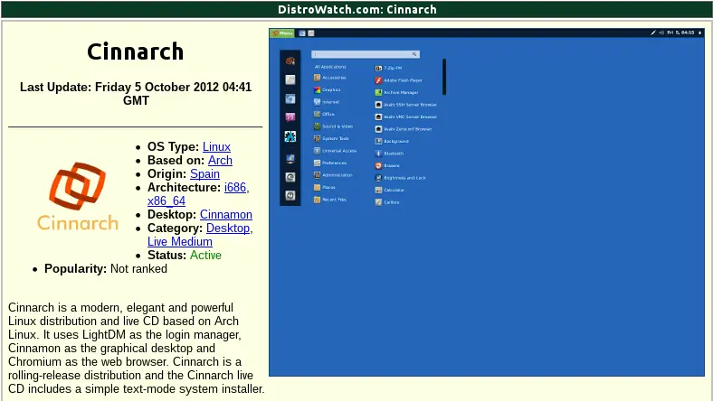 Cinnarch 2012.10.01 released! Finally, systemd has come to Cinnarch Changelog System: SystemD as a system and service manager. Full systemd, that means that there is no initscripts (rc.conf, rc.local, rc.sysinit …). The boot process is now faster with the parallelization capabilities. Welcn, the new welcome screen for Cinnarch is present in this release (but the graphical installer button is desactivated) Quiet boot (because is so fast… ) CLI Installer: Other Operating Systems self-recognition in GRUB Fix: /etc/localtime link Fix: Intel drivers in Lenovo laptops Design: cinnarch-wallpapers now contains some wallpapers from Devianart Changed the default wallpaper Packages: Linux kernel v3.5.4 Cinnamon 1.6.1 LightDM 1.3.3 Xnoise 0.2.11 Pantheon-files 0.1 (still with the 32 bits corrupted text on sidebar -.-) Hotot 0.9.8.8 Chromium 22 http://www.cinnarch.com/