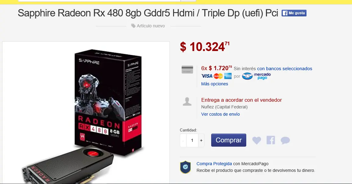 Apurate papu que se acaban!!! Aca un par de comentarios de los linces... La pagina donde la venden a 250 dolarucos... EJERCITO LINCE ACA LES DEJO EL LINK http://articulo.mercadolibre.com.ar/MLA-626227151-sapphire-radeon-rx-480-8gb-gddr5-hdmi-triple-dp-uefi-pci-_JM EJERCITO LINCE ATACANDO Sigue el bardeo? http://articulo.mercadolibre.com.ar/MLA-626227713-intel-core-2-quad-q9650-processor-30-ghz-12-mb-cache-socket-_JM