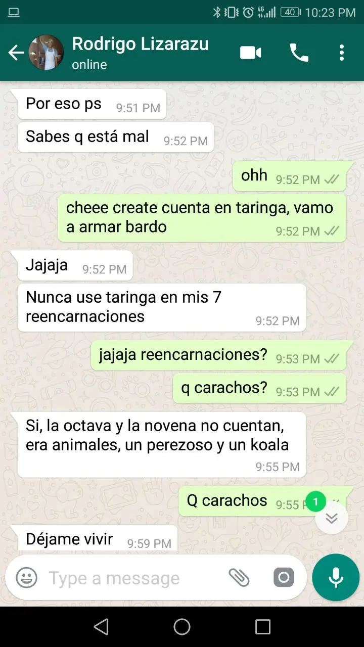 Taringueros y taringueras, después de bastante tiempo de resignarme a pelear en los comentarios, les traigo un nuevo post, logré una de mis mayores ambiciones, convertí a un amigo normal en taringuero. Les dejo un video para amenizar esta pavada. link: https://www.youtube.com/watch?v=6366dxFf-Os Los viejos confiables, Arctic Monkeys. La cosa es que me aburrí de Whatsapp y quise llevar mi ociosidad al siguiente nivel, naturalmente Taringa. Lo seduje para que se uniera a esta gloriosa comunidad. Le expliqué algunos detalles. Le di una sabia advertencia, aprendida por experiencia propia al haber escogido un nick estúpido. Expresé desaprobación por su mala decisión Le di a conocer las sutilezas de nuestro delicado ecosistema. Por fin, fruto de minutos de arduo esfuerzo, a ver el primer mensaje. Como buen amigo que es, manda un insulto y es censurado. Escribe su primer mensaje, y como era de esperarse, es una reverenda estupidez. Unos consejos finales para prosperar entre virgos... No tenía papel para la certificada así que de paso se enteran que tengo gato :3 Taringuer@s, ¡los invoco! Enseñenle a este ingenuo en que se metió.