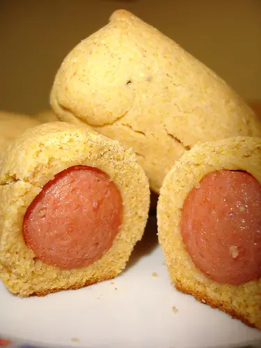 HOLA!! Les traigo la receta original de los corn dogs, popularmente conocidos por las peliculas, son muy practicos para hacer para fiestas o cuando vienen tus amigos a ver el partido, ya que se comen con palito de brochette, no hay que lavar platos por lo menos, ademas son muy faciles de hacer y seguro la mayoria de tus amigos nunca probaron. Para 16 Corn dogs 1/4 L aceite vegetal 1 taza harina 1/4 cucharada te de sal 1/8 cucharada te de pimienta 1/4 taza de polvo de hornear 1 taza de polenta 1 taza de leche 1 huevo 16 panchos Implementos: 1 bowl 1 sarten hondo y grande 16 palitos de madera (los de brochette) 1 jarro alto o jarra alta (como los panchos o un poquito mas) Calentar el aceite a 180 grados.Ponerle el palito a los panchos y secarlos en una toalla de papel. Aparte poner todos los ingredientes en un bowl y mezclar hasta homogeneizar. Poner algo de la mezcla en el jarro. Pasar el pancho por la mezcla hasta que quede bien cubierto, poner a freir de a dos o tres, hasta que quedan marroncitas, unos 10min. Ir llenando el tarro a medida que se necesite. Sacar con pinzas del sarten y escurrir en toallas de cocina de papel. Servir calientes con ketchup o alguna salsa o dip PD: la receta original es frita, pero se pueden hacer al horno tambien, que es mas practico si haces muchos, poniendolos asi: PARA ACOMPAÑAR LES DEJO EN POST DE LAS PAPAS CHIPS EN MICRONDAS http://www.taringa.net/posts/recetas-y-cocina/5309644/Papas-chips-en-el-microndas-para-la-cerveza,-5-minutos.html