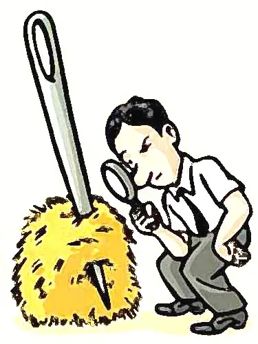 Cómo encontrar una aguja en un pajar Muchas veces nos dicen que conseguir algo es más difícil que encontrar una aguja en un pajar. Mediante este texto, quiero aportar mi granito de arena a la sapiencia mundial, explicando 10 maneras extraordinarias de llevar a cabo esta tarea. 1. Incendiar el pajar Simple pero muy efectivo. Nunca falla. Encontrar la aguja entre las cenizas será cuestión de pocos minutos. Precaución: No incendie el granero. 2. Pagarle a alguien para que busque Nada más fácil que ver cómo los demás hacen el trabajo duro. El problema es que hay que hacer una pequeña inversión económica. 3. Electroimán gigante Mediante un gigantesco electroimán colocado cerca del pajar, se atraería la aguja dejando el pajar casi intacto. Es prolijo pero requiere un electroimán gigante. 4. Decantación Se arroja todo el pajar (y la aguja, que está en algún lado del pajar) en una pileta llena de agua. La paja va a flotar, pero la aguja caerá al fondo. No recomendado si la aguja no es de acero inoxidable. 5. Ley de Murphy Cuando se siente a descansar sobre el pajar, la aguja se clavará en sus asentaderas en el punto más incómodo y doloroso posible. 6. Detector de metales Se hace pasar a paladas todo el pajar por un detector de metales. Si el detector es bueno, va a sonar cuando la aguja pase por él. Alternativa: conseguir un detector de metales portátil y pasarlo por el pajar. 7. Rayos X Es el favorito de los oficiales de aeropuerto: simplemente se hace una radiografía del pajar, y se verá claramente dónde esta la aguja. 8. Método hipotético-deductivo Al mejor estilo Sherlock Holmes, interroga, busca pistas y fuma pipa hasta dar con la aguja. 9. Método de mi madre Llamando a la aguja (con voz aguda) al grito de “aguja, aguja!”. (la experiencia de campo con este método no fue muy efectiva, y mis colegas esbozan la hipótesis de que mi madre sólo estaba bromeando) 10. Método simple Se olvida la aguja en el pajar, se va a la mercería más cercana y se compra una aguja de características similares a la perdida, solucionando el asunto en menos tiempo (y consecuentemente, capitalizando el tiempo ganado). Se aceptan mas soluciones
