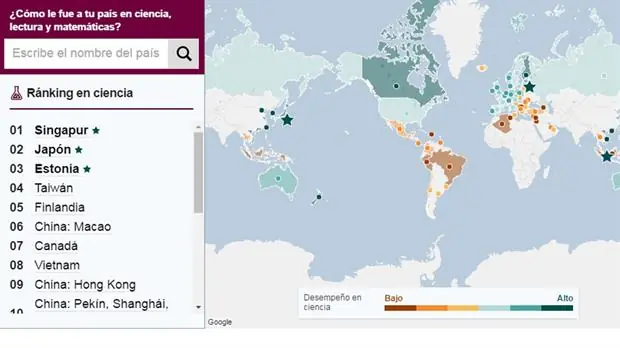 Los nuevos resultados del Programa para la Evaluación Internacional de los Alumnos, PISA por sus siglas en inglés, fueron divulgados hoy. Cerca de 540 mil estudiantes de 15 años en 72 países participaron en los tests que realiza cada tres años la Organización para la Cooperación y el Desarrollo Económico, OCDE. Y en las tres disciplinas evaluadas, ciencia, matemáticas y lectura, Singapur está a la cabeza. En ciencia, los países que se ubican tras Singapur son Japón , Estonia, Taiwán y Finlandia. En matemáticas le siguen Hong Kong, Macao, Taiwán y Japón. (China no participa con todas sus regiones sino algunas localidades como Hong Kong y Macao). Y en lectura, luego de Singapur se encuentran Hong Kong, Macao, Taiwán y Japón. Los mejores estudiantes de Latinoamerica se encuentran en la Ciudad de Buenos Aires. En cuanto a América Latina, la mejor ubicación en las tres disciplinas fue para la Ciudad Autónoma de Buenos Aires, con el lugar 38 en ciencia. Un analista de la OCDE explicó que no pueden divulgarse datos sobre Argentina en general debido a que la lista de colegios presentada no permite conclusiones estadísticas robustas. La excepción fue la Ciudad Autónoma de Buenos Aires. En ciencias, luego de la Ciudad Autónoma de Buenos Aires se encuentra Chile en el lugar 44 seguido de Uruguay (47), Costa Rica (55), Colombia (57), México (58), Brasil (63), Perú (64), República Dominicana (70). En matemáticas, los resultados para América Latina fueron los siguientes: Ciudad Autónoma de Buenos Aires (42), Chile (48), Uruguay (51), México (56), Costa Rica (59), Colombia (61), Perú (62), Brasil (65), República Dominicana (70). Y el ránking de la región en lectura fue: Ciudad Autónoma de Buenos Aires (38), Chile (42), Uruguay (46), Costa Rica (51), Colombia (54), México (55), Brasil (59), Perú (63), República Dominicana (66).