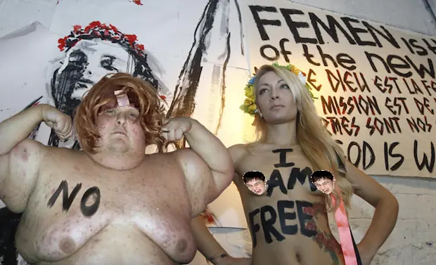 EL AGENTE HA TENIDO QUE DEJAR DE DEPILARSE La Policía Nacional ha logrado infiltrar a uno de sus agentes en el mediático colectivo feminista Femen. Lo confirmaba esta mañana en su despacho el capitán de la Brigada de Información de Bruselas, que prefiere mantener el anonimato por el carácter secreto de la misión que dirige en estos momentos y que protagoniza Tom (nombre falso), un varón de 40 años y 122 kilos de peso. “Tom ya había participado con nosotros en misiones de alto riesgo”, explica el capitán. “Pasó dos meses dentro de un grupo de mafiosos rusos con un micro oculto debajo de una de sus tetas. Sabíamos que, aunque sospechasen de él y le quitasen la camiseta, no iban a detectarlo. Por muy frío y calculador que seas, imagínate el ascazo de tener que coger una de esas mamellas para ver si hay algo debajo”, asegura. Uno de los frecuentes cambios de look a los que Tom se somete por seguridad dio la idea para esta operación. “Llegó con una melena rubia, larga. Les juro que de escorzo parecía una gorda alemana. ¡Si hasta el sargento le propuso ir a tomar una copa!”, relata el capitán. Los responsables de la misión no dudaron, pues, en preparar a Tom para entrar como agente encubierto en Femen. “Lo más complejo fue depilar la zona de… bueno, el trasero. Tom es un hombre bastante peludo y lo que tenía ahí era una mata de escándalo. Temíamos que descubriesen que era un hombre si aquella pelambrera se transparentaba a través de las bragas”, confiesa el policía. Al preguntarle si no temían que pudiesen verle a Tom sus atributos masculinos, el capitán responde con absoluta tranquilidad: “Tiene tal barriga que ni se le ve. Y se lo digo yo que he compartido vestuario con él muchas veces”. Para grabar y permitir la identificación de las líderes del grupo radical, Tom llevaba oculta una microcámara entre el pliegue de dos michelines. “Lo malo es que el cabrón está tan fofo que muchas veces las chichas le cuelgan más de lo debido y tapan el objetivo”, admite el agente. Los miembros de la brigada temieron en una ocasión por la vida de Tom. Al principio se pensó que las feministas habían descubierto al topo y que iban a tomarse la justicia por su mano, aunque la realidad fue bien distinta. “Se iban a descolgar del Vaticano con pancartas y el arnés de Tom estuvo a punto de partirse por el peso. Casi aplasta a un obispo al caer”, asegura el capitán. “Si les soy sincero, el plan está siendo un auténtico desastre”, lamenta. “Le hemos dicho a Tom que aborte la misión pero se niega a volver. En un mes está viendo más tetas que en toda su vida”, reconoce. La última vez que se vio a Tom fue en una protesta proabortista en La Haya. Allí, sus tetas, con mensajes escritos en ellas, contoneaban tanto o más que las de cualquiera de sus compañeras.