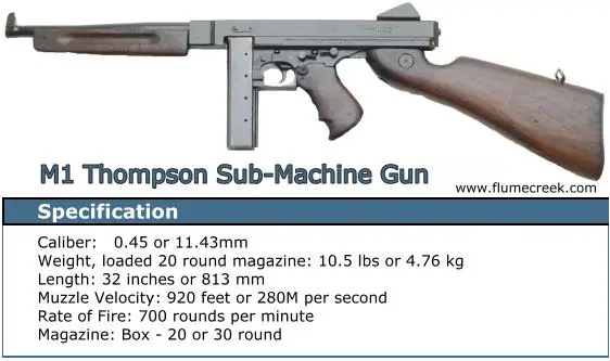 Ametralladora Thompson ---------------------------------------------- Subfusil Ametrallador Thompson Tipo Subfusil Nación(es)de origen Estados Unidos Época Década del 20 y el 30-Segunda Guerra Mundial-Guerra de Corea-Guerra de Vietnam-Hasta las réplicas de hoy en día. Historia Fecha de diseño 1917-1918 Periodo de producción 1921-Presente (réplicas) Periodo de servicio 1938-1971, Dato oficial del Ejército de Estados Unidos Operadores Ejército de Estados Unidos, FBI, Ejército Sueco, Ejército Británico, Mafia, IRA Servicio en guerra Guerra de la independencia irlandesa, Guerra Civil Irlandesa, Segunda Guerra Mundial, Guerra de Corea, Guerra de Vietnam (uso limitado) Variantes Persuader & Annihilator, M1921/A1, M1927, M1928/A1, M1/A1 Número construido 1,700,000 aprox. Especificaciones Tipo Subfusil semi-automático/automático según modelo. Calibre .45 Longitud del cañón 500 mm Munición .45 ACP (11.43 × 23 mm) Cargador 20-30 balas (Cargadores rectos) / 50-100 balas (Cargadores "tambor" Sistema de disparo Friction lock (primeros modelos), Blowback-operated (M1/M1A1) Longitud 851 mm M1918/A1 , 811mm M1/A1 Peso 4.9 kg M1928/A1 - 4.8 kg M1/A1 Cadencia 600 - 800 balas/min Velocidad de la bala m/s Alcance efectivo 200 m. máximo Diferentes tipos de Thompsons La Ametralladora Thompson es un subfusil que se volvío infame en la época de la Prohibición. Era normalmente vista en la películas de mafiosos de los Estados Unidos de ese tiempo, siendo usado también por las fuerzas policiales así como también por los mismos criminales. La Thompson llegó a ganarse apodos en su país como "Tommy Gun", "Chopper", "Chicago Typewriter" y "Chicago Piano". Fue la favorita de soldados y civiles por ser compacta , por su munición .45 ACP y por su elevada tasa de fuego en modo automático. También conocido por ser utilizado masivamente por el ejército estadounidense en el trancurso de la Segunda Guerra Mundial. Características ----------------- La ametralladora Thompson podía disparar, en el modelo M1921 (el primero en ser introducido), aproximadamente 1100 balas por minuto del calibre .45 ACP (11.43 mm). Origenes del Arma link: http://www.videos-star.com/watch.php?video=t7uqhsxa1nw Éste arma, comparable a la MP40 alemana, era ligera, con culata de madera y, simplemente, una pistola de repetición, ya que era de un calibre pequeño. Historia y Servicio ---------------------- Historia de la Thompson link: http://www.videos-star.com/watch.php?video=wQzXDMjb8Yc El inventor de esta ametralladora fue el general John Taliaferro Thompson, militar que sirvió por muchos años en el departamento de artillería del Ejército de Estados Unidos. El mismo se inspiró en el diseño de la ametralladora estando en una trinchera durante la Primera Guerra Mundial desarrollando lo que el llamaría "one-man, hand-held machine gun" (ametralladora personal "de mano" o portátil). Mientras buscaba la forma de que el arma operara seguramente Thompson, se cruzó con un problema de patentes ante John Bell Blish. Con una manera de hacer posible su idea, Thompson encontró soporte financiero de un patrocinador y así fundó la Auto-Ordenance Corporation en 1916 con el propósito de fabricar su arma. Los diseñadores principales fueron Theodore H. Eickhoff, Oscar V. Payne, y George E. Goll. A finales de 1917 descubrieron la forma de usar el Blish lock (mecanismo de seguro de armas diseñado por John Bell Blish), y asimismo vieron que la única munición utilizada por el ejército en el momento, que funcionara con el seguro Blish, era la .45 ACP. El proyecto se llamó "Aniquilador I" (en inglés "Annihilator I" y para 1918 ya habian resuelto casi todos los problemas de diseño. Sin embargo la guerra terminó antes de que pudieran enviar los prototipos a Europa. En 1919 una junta directiva de la Auto-Ordenance discutía el mercadeo de la "Aniquiladora", ahora que la guerra había terminado, fue oficialmente renombrada la "Thompson Submachine Gun". Mientras otras armas fueron desarrolladas brevemente en ese tiempo con los mismos objetivos en mente, fue la Thompson la que fue etiquetada y marcadeada como "submachine gun". Uno de los Primeros modelos La primera Thompson en ser producida en serie fue el Modelo de 1921 (Model of 1921). Estaba disponible para uso civil aunque su elevado precio resultó en pocas ventas. Las Thompson Modelo 1921 se vendieron en pequeñas cantidades al servicio postal estadounidense (para proteger al correo de una racha de delitos), seguidos por varias comisarías de los Estados Unidos y ventas intenacionales menores a diversos ejércitos, a policía civil, gendarmería y fuerzas paramilitares principalmente en América Central y América del Sur. También fueron adquiridas por el IRA por mano de partidarios en los Estados Unidos y fue utilizada en eventos posteriores como la Guerra de la independencia irlandesa y la Guerra Civil. Las Thompson se usaron limitadamente por el Cuerpo de Marines de los Estados Unidos (solo utilizaron el modelo M1928), con el cuál los Marines intervinieron en una serie de conflictos en América Central, particularmente en Nicaragua, donde era común que los Marines usaron la Thompson M1928 como mecanismos de defensa y para contrarrestas emboscadas llevadas a cabo por la guerrilla Sandinista. La Thompson alcanzó su primera notoriedad en la era de la mafiosos de la Gran depresión y en las películas basados en estos mismos. En ese tiempo la llamada China Nacionalista también adquirió una cantidad para combatir a las fuerzas terrestres Japonesas y eventualmente terminaron fabricando copias en pequeñas cantidades de las Thompson que habían comprado para su uso en varios ejércitos y milicias. En 1938 el subfusil Thompson fue adoptada por las Fuerzas Armadas de los Estados Unidos sirviendo durante la Segunda Guerra Mundial y mas tarde en la Guerra de Corea así como también en primeras instancias de la Guerra de Vietnam. Otros países aliados también compraro