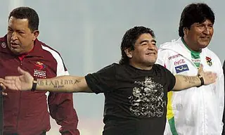 Maradona, La pelota si se mancha Una recopilacion de la vida de Maradona fuera de las canchas. Maradona y la politica Maradona y Menem En estos tiempos el Diego todavia creia en la derecha, igual es bastante actual la foto, no? Aca estaria cerca de Menem o de la Bolocco ? El bueno y el malo Un canto de esperanza ? Aca vemos a Diego muy cerca de Menem, y en ninguna salio agarrandose los huevos por lo que podemos deducir que es afinidad pura con el Ex Presidente, es probable que Maradona al igual que muchos otros se sintiera atraido al carisma de Menem. Pero lo cierto es que Diego estuvo muy cerca del turco, cosa nada mala porque sobre idiologias cada uno elige la que quiere, pero cuando queres abarcar izquierda y derecha tus esfuerzos para obrar de acuerdo a tus ideales se complica, a continuacion lo vemos. Pero el Diego tiene codigos, por eso le hizo el aguante a su amigo Menem y aunque parezca grotesco, estuvo festejando la derrota del entonces candidato Justicialista Eduardo Duhalde. Esa no fue la unica vez que Diego demostro su afinidad con el Ex Presidente, cuando este estuvo preso por la venta de armas a Croacia y Ecuador fue asiduamente concurrente. Siguiendo con las bizarradas, el Diego se dirigio a Menem como "Mi Presidente", recordemos que era epoca de De la Rua, y no solo eso el Diego llevo un turbante arabe! como apoyo al pueblo de Afganistan por la guerra que estaba enfrentando con Estados Unidos. Casualmente una de las dedicotorias del libro autobiografico de Diego "Yo soy el Diego" fue para Carlos Menem. Maradona gira 180º Maradona y Fidel para su programa "La Noche del 10" Embocala Fidel El Che Guevara en la piel Aire! Diego mostrandole el tatuaje del mismisimo Fidel, quien pone cara de no ver un elefante a dos metros. Eran tiempos en los que el Diego estaba haciendo su tratamiento para superar su adiccion a las drogas y estaba en Cuba. Ahi mismo se enamoro de la isla y ya que estaba del gobernante de turno, Fidel Castro. Si bien hay que reconocer que Diego incluso desde muy joven fue siempre opositor al imperialismo norteamericano, defendiendo siempre a Cuba y condenando el bloqueo que sufre la isla. Diego no solo siente admiracion por Fidel Castro, el compañero revolucionario de Fidel, Ernesto "Che" Guevara tambien comparte ese privilegio. Como señal de admiracion y como tambien hiciese con Fidel, el Diego se tatuo en el hombro derecho la mitica imagen del Che. En "Yo soy el Diego" cuenta: "Tipos como Videla hacen que el nombre de la Argentina esté sucio afuera; en cambio, el del Che nos tendría que hacer sentir orgullosos". Maradona y Kirchner Maradona con Kirchner Un gran regalo para Nestor Bueno, taringuero, si leiste todo hasta aca te habras dado cuenta que el Diego es capaz de codearse con el mismo carisma con la ultra derecha neoliberal, tanto con el comunismo. Ahora vemos otro salto del Diego, esta vez no estoy tan seguro si es un salto a la derecha o uno a la izquierda, mas bien seria un salto al vacio... pero bueno, el Diego tuvo un dialogo antologico con el Ex Presidente Kirchner, literatura señores: Nestor: Sos un hombre joven, tenés que cuidarte y luchar por tu recuperación” Diegote: “Te veo como un presidente con huevos para sacar adelante al país” “Fidel Castro me había hablado bien de vos. En Cuba se habla mucho del presidente de los argentinos” Pero asi como un marido le deja el coche que esta hecho mierda a la mujer para que vaya de compras, Nestor le dejo la Argentina a su mujer, Cristina Kirchner, como siempre Diego se mostro mas que receptivo a todo lo que sea encuentros con Presidentes, en este caso Presidenta. Nestor: "Como mete mano , buenisshhmo" Igualmente el Diego venia haciendo bien los deberes desde la campaña de Cristina a la que siempre apoyo (politicamente) incondicionalmente, defenestrando a su rival Elisa Carrio. Algunas frases: "Creo que Cristina gana. Yo la voto a ella, aunque este país sea un país machista" "Que gane, por favor, aunque no la quieran a Cristina. ¡Por el 90 por ciento! Si van a ballottage, me voy a vivir a Uruguay. Bancarme a la Carrió, no, por favor. Preferiría otra alternativa, cualquiera". Maradona como figura politica sudamericana Corria el año 2005 y la republica Argentina miraba asombrado como el pais era testigo de uno de los preparativos de seguradad mas impresionantes en la historia. Es que Mar del plata era la sede de una nueva "Cumbre de las Americas" y uno que venia a participar en la cumbre era una de las personas mas odiadas del planeta, George W. Bush. Diego firme con sus principios, decide participar en la "Cumbre de los pueblos", una cumbre paralela a la "Cumbre de las Americas" pero con un tinte mas de izquierda. Asi que Diego junto con otras 200 personas elegidas de la elite antimperialista sudamericana, entre las que se encontraban el Presidente Venezolano Chaves y en esa epoca el candidato a Presidente de Bolivia, Evo Morales, abordaron el "Expreso del Alba". Maradona con Evo, robando camara Bonasso Notese el escudo Argentino en el tren Les presento a Hugo y Evo Otro uso mas para la esvastica El Diego tambien apoyó en Bolivia las aspiraciones del país para seguir jugando partidos de fútbol en altura, a más de 2700 metros sobre el nivel del mar. Apoyó al gobierno boliviano, y atacó a la FIFA y su presidente. Blatter, de quien dijo que "nunca pateó un penal". "Aca se puede jugar" dijo el Diego despues de terminado el partido Los hermanos sean unidos. Bueno amigos, hasta aca el post. Espero que les halla gustado. Saludos. Fuentes: http://www.channel4.com/news/articles/politics/international_politics/futbol+politico+diego+maradona/603257 http://www.elmundo.es/1999/10/26/internacional/26N0051.html http://www.terra.com.ar/ctematicos/armas/29/29722.html http://www.terra.com.ar/ctematicos/armas/29/29722.html http://www.clarin.com/diario/2005/08/12/conexiones/t-1031779.htm http://www.clarin.com/diario/2007/10/20/elpais/p-03001.htm http://www.clarin.com/diario/2005/11/03/elpai