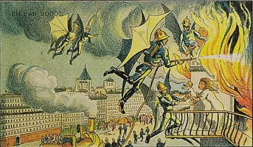 Así será el año 2000 Aquí va una curiosa colección de cromolitografías perteneciente a la Biblioteca Nacional de Francia que muestran como imaginaba el autor en el año 1910, supuestamente un tal Villemard, como sería la vida en el año 2000 con sus adelantos y maravillas tecnológicas. Se especula que estas colecciones eran dibujadas para incluirlas en “comestibles” u otros productos, más o menos como coleccionables de cromos. Es curioso ver como a este autor en particular, pese a que imaginó mil y un ingenios futuristas, no se le pasó por la cabeza que tras un siglo la gente pudiese cambiar su modo de vestir y así los muestra, ataviados a la moda decimonónica. En la primera postal vemos a los bomberos alados del futuro, es algo lógico. ¿Existe algún método mejor para apagar los fuegos en las alturas? Aquí vemos al robot-sastre, por un lado se mete la tela y sale ya cortada y cosida a la medida. ¿Barco?Globo aerostático?… Lo que sea, pero eso sí, con la bandera de Francia. Aquí vemos al zagal tirando de manivela en la máquina del saber. Se exprimen los libros y se pasan por cable a los chavales del futuro, con sus calcetines del futuro… Véase que solo los rubios son capaces de aprender de este modo. Un arquitecto en una caseta dirige por medio de robots la construcción de la obra. La idea no ha llegado a cuajar, pero si que han tomado la caseta para diseñar los W.C portátiles de las obras. Una teleconferencia a distancia, el operario de la maquinaria también trabaja como organista en la iglesia. El hombre dicta una carta a viva voz y automáticamente sus palabras se transcriben al papel. Esta idea nunca llegó a triunfar por hecho claro: estas máquinas no llevan minifalda. El baño autómata, un sueño por cumplir para millones de mujeres. Por el momento la tecnología no lo ha conseguido y se ha quedado la cosa en ese espejo redondo con mil aumentos en el que los granos parecen el volcán Krakatoa. Otro ingenio soprendente, la barbería automática. En este caso si que es una lástima que todavía no exista porque apuesto a que esta máquina cortaba mejor el pelo que muchos peluqueros, jeje Señor, su mujer le envía un cilindro de cera para que lo escuche en el fonógrafo. “Manolo, por favor¡¡ Ves al autobarbero y córtate esas patillas, por Dios” Todo el mundo tendrá pequeños aeroplanos para desplazarse por la ciudad y no existirán los alcoholímetros ni la guardia civil. En el futuro existirán veloces bicicletas, pero no se conocerá la aerodinámica y se pondrán de moda los cascos romanos. Si alguien se escapa de la cárcel, los vigilantes lo encontrarán enseguida, y si alguna mujer se desnuda en ante una ventana, la encontrarán todavía más rápido. Aeroplanos particulares de todo tipo, grandes, pequeños, biplaza… Y como no, un par de porrazos para los voladores imprudentes. Patines a batería. Para los que han perdido los puntos del carnet de aeroplano. http://tejiendoelmundo.files.wordpress.com/2010/02/the-electric-train-paris-peijing.jpg?w=510 Un tren París – Beijing. Véase la altura del tren, una reivindicación que hicieron todos los atropellados por tren del siglo pasado. . Como veis, la idea de los avances de un siglo a otro es un tanto descabellada y no lo podemos tomar a broma. ¿Se tomarán a broma dentro de un siglo nuestras predicciones presentes sobre esa fecha?jeje .