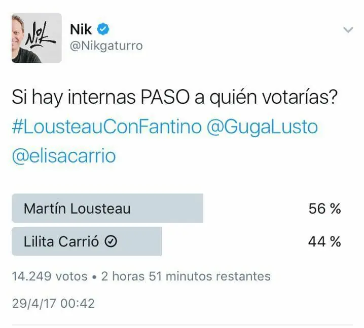 Ejemplo de hoy: Martín Lousteau, el ex Ministro kirchnerista que dice ser de Cambiemos. Los #trolls son cuentas truchas en las redes sociales que se usan para crear "tendencia". Tendencia, es hacer creer al público en general que "todo el mundo" piensa y habla de lo mismo. La realidad del asunto es que no se trata de personas reales, sino de #bots (robots), que no son más que cuentas truchas manejadas por una misma persona, para simular una supuesta mayoría que en la realidad no existe. Estos robots también pueden ser utilizados para otras funciones, como por ejemplo votar encuestas en redes sociales, haciendo creer que "una inmensa mayoría" prefiere una u otra opción, como por ejemplo esta encuesta entre Elisa Lilita Carrió y Martín Lousteau. El asunto en el uso de los trolls, es que si no interactúan personas reales con esos robots, termina siendo una gran papelón ya que solo son los robots los que hablan, opinan o postean sobre vos, como lo es éste ridículo ejemplo del ahora devenido en radical, el "Guga" Lousteau. #LosTrollsDeLousteau
