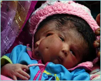 las enfermedades y anomalías más escalofriantes que se pueden sufrir. Un documento bastante duro con algunas fotografías explicitas que no recomiendo ver si eres sensible o menor de edad. Diprosopus o Diprosopia : Diprospus (llamado en algunas ocasiones duplicación cráneofacial) es un desorden muy raro en el cual el afectado forma en su gestación dos caras, como en la fotografia a la izquierda de este texto. Los pequeños con dos caras tienen un cuerpo y extremidades normales, pero la mayoría de sus rasgos faciales están duplicados. Según el grado de la alteración pueden tener dos, tres o cuatro orejas; cuatro ojos (o sólo tres), y dos labios separados o uno sólo de mayor tamaño que lo normal. A pesar de lo que se puede pensar no se produce como fusión o la división de dos embriones. Existen diversas teorías al respecto, una de las que más fuerza tiene nombra como causante de esta anomalía a una proteina que determina la formación facial del feto, cuando existe en exceso puede provocar una segunda cara y en su defecto el rostro puede aparecer con algunas carencias. Las criaturas que nacen con esta anomalía suelen fallecer al poco tiempo de su alumbramiento, por suerte es uan afección muy fácilmente detectable en las primeras semanas de gestación. Síndrome de Hutchinson-Gilford - Progenia: Es una enfermedad que comienza en la niñez y produce un envejecimiento rápido. La progenia es una condición rara, pero ha llegado a ser de conocimiento público, debido a sus síntomas que se asemejan bastante al envejecimiento humano normal y a la aparición de varios niños afectados en las películas o televisión. La progenia produce un rápido envejecimiento de los niños, comenzando con una deficiencia en el crecimiento durante el primer año de vida que tiene como resultado cuerpos desproporcionadamente pequeños en relación con el tamaño de sus cabezas. Los niños son delgados y presentan calvicie, cara alargada y arrugada y piel de apariencia envejecida. Los niños con progenia desarrollan aterosclerosis temprana y el promedio de vida llega hasta los primeros años de la adolescencia, aunque algunos pacientes pueden vivir hasta los 30 años. La causa de muerte generalmente está relacionada con el corazón o un accidente cerebrovascular como resultado de la aterosclerosis progresiva.Síntomas: Deficiencia en el crecimiento durante el primer año de vida, cara alargada y arrugada, calvicie, pérdida de las pestañas y las cejas, estatura baja, cabeza grande para el tamaño de la cara (macrocefalia), la fontanela (punto blando) permanece abierta, mandíbula pequeña (micrognatia), piel seca, descamativa y delgada, rango de movimiento limitado, retardo en la formación o ausencia de los dientes. Diphallia: Es una anomalía en la cual el afectado nace con dos penes. Es un desorden muy raro del que sólo se tiene constancia de 1.000 casos. Los que lo sufren tienen un alto riesgo de tener espinal bífida. En algunos casos los penes son del mismo tamaño y perfectamente funcionales aunque en la mayoría de los casos uno de los dos queda como un pequeño apéndice no funcional, en algunos casos el afectado puede orinar por uno o ambos y tener erecciones con los dos miembros. Según datos estadísticos 1 de cada 5,5 millones de estado unidenses tiene dos penes tengo muchas mas pero primero queria saber si les gusto o si quieren saber de alguna en especial