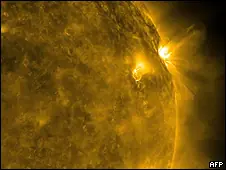 El Sol produce su mayor explosión en cuatro años El Sol ha tenido su mayor erupción en cuatro años, según imágenes captadas por la NASA. La erupción consiste en la emisión de lo que se denomina una llamarada de clase X, el tipo más fuerte, que puede afectar las comunicaciones en la Tierra. El Observatorio de Dinámicas Solares de la NASA, la agencia espacial estadounidense, lanzado hace un año, recogió impactantes imágenes de la estrella. En ellas se ve un intenso destello de radiación ultravioleta emanada de una mancha solar llamada mancha 1158, en una región muy activa en el hemisferio sur del Sol. Se espera que las erupciones lleguen al campo magnético terrestre durante los próximos dos días, causando un aumento en la actividad geomagnética y permitiéndoles a quienes viven cerca de los polos (por ejemplo al norte de Inglaterra) ver auroras. La enorme llamarada se registró el martes 15 de febrero y se dirigía a la Tierra. Según la agencia espacial de EE.UU., la fuente de esta actividad - las llamadas manchas solares 1158 - están creciendo rápidamente. Las erupciones solares, también conocidas como protuberancias, son causadas por la liberación súbita de energía magnética almacenada en la atmósfera solar. Como explica Paul Rincon, corresponsal de ciencia de la BBC, los datos preliminares de la sonda Stereo-B y la nave espacial Soho sugieren que la explosión produjo una eyección rápida, aunque no especialmente brillante, de masa coronal (CME), una ráfaga de partículas cargadas lanzadas al espacio. "Despertando" Los expertos advirtieron que este fenómeno podría crear una tormenta geomagnética alrededor de la atmósfera de la Tierra, que podría interferir con la energía eléctrica, redes y sistemas de comunicaciones. También significa que el espectacular despliegue de luz en el cielo nocturno conocido como la aurora puede ser visible en latitudes más bajas de lo habitual. En 1972, una tormenta geomagnética provocada por una erupción solar interrumpió las comunicaciones telefónicas de larga distancia en el estado de Illinois (EE.UU.). Y en 1989, otra tormenta sumió a seis millones de personas en la oscuridad en la provincia canadiense de Quebec. Los investigadores dicen que el Sol "se ha estado despertando" después de un período de varios años de baja actividad. Algunas partes de la aurora boreal ya se han visto más al sur de lo habitual en Irlanda del Norte y en otros lugares en el Reino Unido. Los científicos señalan que se puede esperar una mayor actividad en los próximos días. FUENTEl