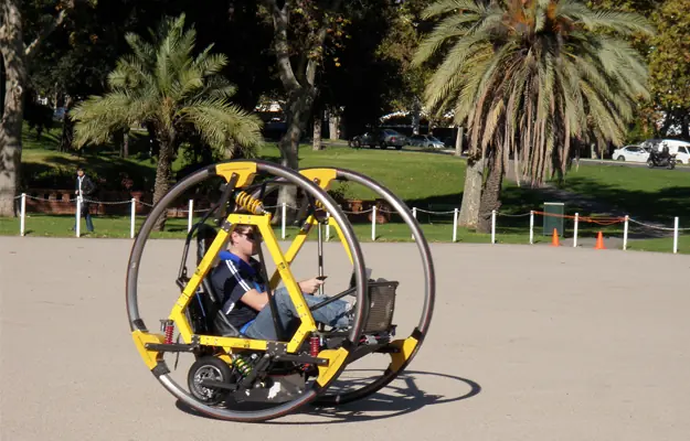 El desarrollo de vehículos eléctricos no tiene límites ni para la tecnología y por supuesto para la imaginación tal es el caso de este vehículo completamente raro y futurista denominado EDWARD –por sus siglas en inglés Electric Diwheel with Active Rotation Damping- y que fue desarrollado por un grupo de estudiantes en la Universidad de Adelaide en Australia. Este peculiar vehículo de ruedas delgadas y gigantes tiene un cuadro interior el cual puede ser fijo o móvil y es para que viaje el piloto. Fue creado e inspirado con base en diversos vehículos que aparecen en la saga de películas de Star Wars. Entre sus características mecánicas EDWARD es capaz de alcanzar una velocidad de 40 Km/h. El cuadro donde viaja el piloto puede alcanzar una inclinación de 12 grados y la duración de la batería, la cual es de plomo-ácido, es de una hora considerando un uso rudo del vehículo con vueltas y giros, así como aceleraciones y desaceleraciones. Su control de operación es una palanca (muy parecida a las que se usan en los simuladores de vuelo de helicópteros) la cual le permite además de avanzar, retroceder y dar vuelta; girar en su mismo lugar sin la necesidad de rodar. Concebido en 2009, esta unidad está muy lejos de ser un vehículo de uso diario, es más bien recreativo y no se dieron detalles de su posible comercialización. link: http://www.youtube.com/watch?v=HG3dro4AWJY&feature=player_embedded