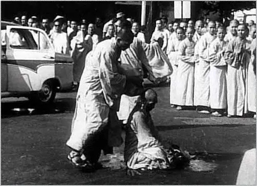 Thich Quang Duc Thich Quang Duc,nació en 1897, fue un monje budista vietnamita (también llamados bonzos) que se inmoló hasta morir en una calle muy transitada de Saigon el 11 de junio de 1963. Su acto de inmolación, que fue repetido por otros monjes, fue el más recordado, ya que fue atestiguado por David Halberstam, un reportero del New York Times que escribió sobre este suceso lo siguiente: "Estaba viendo de nuevo la señal, pero una vez fue suficiente. Las llamas estaban surgiendo de un ser humano; su cuerpo fue marchitándose lentamente, su cabeza se ennegrecía. En el aire había un olor a carne humana quemada; el hombre se quemó sorpresivamente rápido. Detrás de mí pude escuchar el sollozo de los Vietnamitas que estaban ahora en la entrada. Estaba demasiado sorprendido para llorar, demasiado confundido para tomar notas o hacer preguntas, además desconcertado para inclusive pensar... Mientras se quemaba él nunca movió un músculo, nunca pronunció un sonido, su calma exterior en agudo contraste con la gente que se lamentaba alrededor de él." Thich Quang Duc estaba protestando contra la manera en la que la administración del Primer Ministro Ngô Đình Diệm oprimía la religión Budista en su país. El acto se realizó en la intersección de las calles 'Phan Đình Phùng' y 'Lê Văn Duyệt'. El nombre de estas calles fue cambiado en 1975 a 'Nguyễn Đình Chiểu' y 'Cách Mạng Tháng Tám'. Su monasterio estaba a las afueras de Huế, la antigua capital de Vietnam. El automóvil Austin azul claro en el que llegó a Saigon para cometer su acto de inmolación se conserva en la pagoda 'Thien Mu'. Después de su muerte, su cuerpo fue cremado conforme a la tradición budista. Durante la cremación su corazón se mantuvo intacto, por lo que fue considerado como santo y su corazón fue trasladado al cuidado del Banco de Reserva de Vietnam como reliquia. Madame Nhu, primera dama de Vietnam en ese tiempo, comentó con respecto a este acontecimiento que ella "aplaudiría por ver otro espectáculo en el cual un monje se convirtiera en barbacoa". Desde ese momento se la conoció con el pseudónimo de la "Dama Dragón". Este es el origen de la expresión "quemarse a lo bonzo", que al revés de lo que la gente piensa no se refiere a la forma de quitarse la vida, sino al hecho de matarse como forma de protesta política La foto mas conocida de ese momento y que ha sido elegida varias veces como una de las mejores de la historia El primer álbum musical de la banda de rock de los 90's Rage Against the Machine utilizó la imagen de la inmolación de Thich Quang Duc en la portada, como motivo de protesta política en los Estados Unidos. Rage