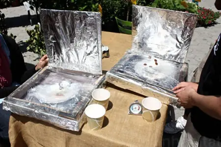 Alimentado por energía solar horno hecha de cajas de pizza reciclado y papel de aluminio Alimentado por energía solar horno hecha de cajas de pizza reciclado y papel de aluminio Después de tropezar a través de esto, estamos seguros de que no se van a lanzar la próxima caja de pizza que terminan con. La escuela secundaria los estudiantes Edward R. Murrow y James Madison se le ocurrió una forma innovadora e impresionante para poner las cajas de pizza vieja para usar. Uso de la cajas de cartón , el dúo creó un horno de tipo con tres de sus lados y una base. Relleno con papel de aluminio para reflejar el sol, Murrow y Madison también capas de los lados del horno con papel negro por debajo de la lámina de aluminio, lo que le permite absorber el calor del sol. Y, por último, que abarca la sección abierta con un plástico para mantener los elementos innecesarios de distancia de los alimentos, que luego tomó estos hechos reciclados de ocasión hornos a la luz pública en la Plaza Norte de la Plaza Unión , hay que mostró su creación, la bondad de calor alimentos sin electricidad, el uso cada vez abundante sol, los rayos. Mantener un termómetro a mano para demostrar, junto con una pizza de queso, Murrow y las invenciones de Madison calienta hasta unos 200 º en el sol del mediodía! Bueno, es hora de tirar nuestro microondas están chupando la energía de distancia y mantener el preservar las cajas de pizza en su lugar. FUENTE :http://www.greenlaunches.com/gadgets-and-tech/solar-powered-oven-made-from-recycled-pizza-boxes-and-aluminum-foil.php COMENTEN