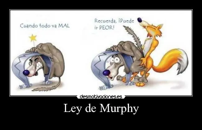 bueno amigos en este nuevo post les voy a hablar acerca de la Ley de Murphy la cual es una forma cómica y mayormente ficticia de explicar los infortunios en todo tipo de ámbitos que, a grandes rasgos, se basa en el adagio. La ley fue enunciada por Edward A. Murphy Jr., un ingeniero de desarrollo que trabajó por un breve período en experimentos con cohetes sobre rieles hechos por la Fuerza Aérea de los Estados Unidos en 1949. ¿Quién fue este Murphy a quien se deben estas leyes de naturaleza tan pesimista? El Murphy a quien se refieren estas ingeniosas frases es Edward A. Murphy Jr. nacido en 1917 y que trabajó como ingeniero de la Fuerza Aérea de los Estados Unidos. Su trabajo consistía en realizar experimentos sobre tolerancia humana a la aceleración. Existen diferentes teorías sobre del origen de la Ley de Murphy y de los detalles de cómo fue formulada inicialmente. La Ley de Murphy es una forma cómica y mayoritariamente ficticia de explicar los infortunios en todo tipo de ámbitos que Básicamente se puede resumir en los siguientes: 1. Si algo puede salir mal, saldrá mal. 2. Todo lleva más tiempo del que usted piensa. 3. Si existe la posibilidad de que varias cosas vayan mal, la que cause más perjuicios será la única que vaya mal. 4. Si usted intuye que hay cuatro posibilidades de que una gestión vaya mal y las evita, al momento aparecerá espontáneamente una quinta posibilidad. 5. Cuando las cosas se dejan a su aire, suelen ir de mal en peor. 6. En cuanto se ponga a hacer algo, se dará cuenta de que hay otra cosa que debería haber hecho antes. 7. Cualquier solución entraña nuevos problemas. 8. Es inútil hacer algo a prueba de tontos, porque los tontos son muy ingeniosos. 9. La naturaleza siempre está de parte de la imperfección oculta. 10. La madre naturaleza es una malvada. 11. Es imposible enseñar algo a alguien que cree saberlo. 12. Cuando se intente demostrar que algo no funciona, funcionará. (Esta ley es aplicable en viceversa) (esta es tu cara cuando eso pasa) 13. No puedes ganar más de 3 veces seguidas. (a menos que trates de demostrarlo) 14. Si te despiertas de buen humor, siempre habrá algo que vuelva malo el día. 15. Cuando buscas algo, encontrarás todo lo perdido, menos lo buscado. 16. Cuando pares de buscar algo, lo encontrarás. 17. Si un artefacto no anda, apágalo y enciéndalo el día siguiente, volverá a funcionar como debe. 18. En la cocina, todos los objetos que caen, van a parar abajo de la alacena. 19. Cualquier objeto pequeño que caiga sobre un piso que tenga una rejilla, por más lejos que esté o más pequeña que sea, siempre va a parar a la rejilla. 20. En el patio siempre hay una silla rota. 21. Todo lo que parece que puede ser beneficioso resulta una ruina. 22. Si explicas algo de modo que lo puedan entender los alumnos, el profesor no lo entenderá. 23. Si se te pierde algo en la calle, por mucho que busques no lo encontrarás. 24. Cada reparación crea nuevas averías. 25. Si tienes papel, no tendrás bolígrafo, si tienes bolígrafo, no tendrás papel; y si tienes papel y bolígrafo, no necesitarás escribir nada. 26. Si tienes algo importante que decirle a una persona, no la encontrarás; si la encuentras, olvidarás lo que tienes que decirle; si lo recuerdas, la persona ya se habrá ido 27. Si está pendiente de que no se derrame la leche al hervirla, lo más seguro es que en el preciso momento en que se distraiga un segundo se derrama. 28. Cuando tienes una pertenencia que no se usa o no se necesita, y a futuro te deshaces de ella, la vas a necesitar urgentemente. 29. Si en una prueba de Matemáticas entre 10.000 temas hay uno del que no estas seguro, ten claro que de eso se va a tratar la prueba 30. Todo aquello que no es una afirmación, debe considerarse una negación. Muchas de estas cosas salen mal y es por que aveces no somos precavidos, así que recuerda siempre que Si algo puede salir mal, saldrá mal. gracias amigos espero les guste