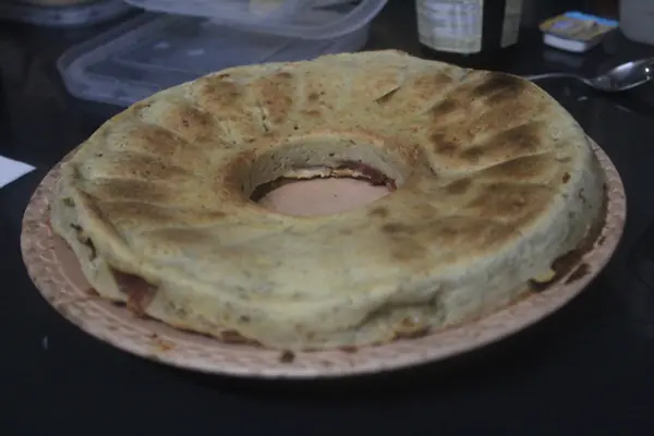 Hoy os traigo una receta basada en la que nos presenta en “Cookpad”, “Jorge Damian Rodriguez”, en su receta de “Torta de fiambre licuada”. Receta original: http://cookpad.com/es/recetas/5215798-torta-de-fiambre-licuada-%F0%9F%A4%A4?via=following_feed Ingredientes (4 personas): 250 ml de leche entera 30 cl de aceite de oliva 240 g de harina 1 cucharada de levadura en polvo 2 huevos 100 g de queso rallado 6-8 lonchas de mortadela 8 tranchetes 6 lonchas de jamón salado Preparación: Comenzamos por preparar la masa. Colocamos en un recipiente apto para una batidora o amasadora la leche, los huevos, la harina, la levadura, el queso rallado y el aceite, mezclando bien todos los ingredientes, hasta que no tengan grumos. Dejamos reposar alrededor de media hora para que actúe la levadura. Encendemos el horno unos 15 minutos a 200º para precalentarlo. Mientras aceitamos un molde de silicona con forma de rosca (o el que tengáis) y volcamos en el la mitad de la masa aproximadamente. Cubrimos la masa con las rodajas de mortadela, sobre la mortadela colocamos los tranchetes de queso y sobre el queso las lonchas de jamón. Cubrimos toda esta mezcla con el resto de masa, alisamos e introducimos en el horno caliente a unos 200º. Aunque la receta original dice que tarda 25 minutos, en mi caso (mi horno es poco potente) tardó alrededor de una hora en darle el punto de cocción que a mí me gusto.