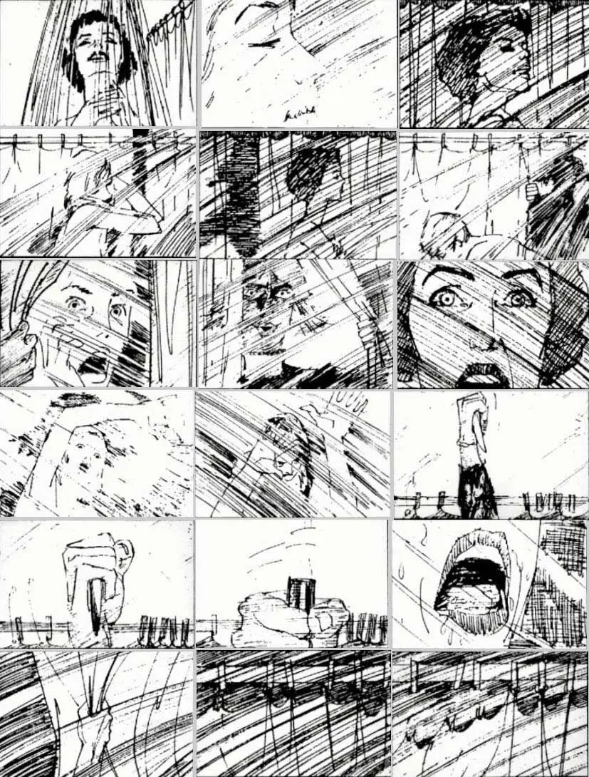 Un documento para la historia es lo que ves abajo. El storyboard original de la mítica escena de la ducha de Psicosis ilustrada por Saul Bass. Ahí es nada. Bass la dibujó en el set donde se estaba rodando y, según cuenta la leyenda, fue él mismo el que la dirigió previa invitación de Hitchcock. Aunque no está confirmado y es curioso que fuera justo después de la muerte del director cuando Bass hizo este comentario. Tienes más información en este enlace. link: http://www.videos-star.com/watch.php?video=sdrDpELNbks