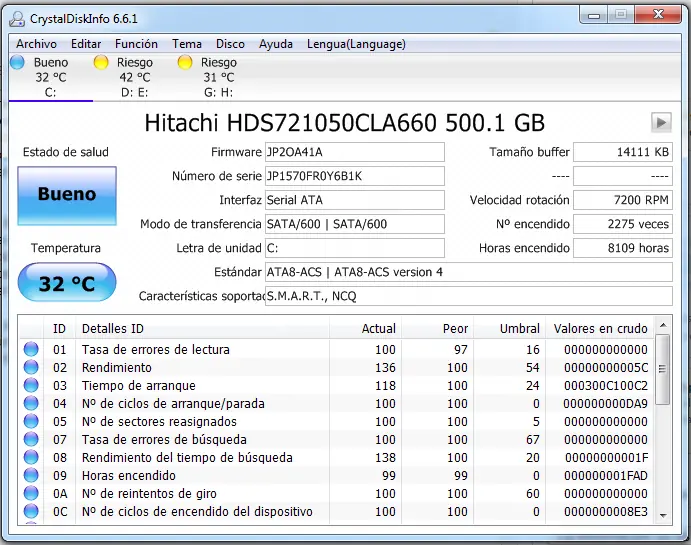 Hola chicos de taringa, hoy les enseñare como saber si un disco duro es nuevo o ya ha sido usado con anterioridad, saber esto es importante ala hora de comprar un disco duro pues un disco duro en apariencia puede verse nuevo pero el tiempo de uso nos dirá si el disco esta próximo a mejor vida y si nos conviene comprarlo o no. También será útil a la hora de comprar un PC genérica o un disco duro nuevo, así evitaremos ser victimas de un estafa y nos aseguraremos de estar haber comprado un disco nuevo. Primero lo primero. UN disco duro tiene un tiempo de vida de 20.000 horas de encendido lo que hacen casi dos años y medio de uso de forma continua, es decir casi 2.5 años sin apagar ni una sola vez. Por supuesto en el uso domestico casi nadie deja encendida su PC durante todo el día y toda la noche. Y como la mayoría de las personas solo usamos unas cuantas horas la PC esto aumentaría mas el tiempo de vida, dependiendo del tiempo de uso en horas. Hay muchos programas que nos pueden decir el tiempo de encendido de un disco duro, por ejemplo esta, Cristal disck ínfo, una aplicación gratuita que revisa el estado de salud del disco duro y también nos puede decir cuanto tiempo tiene de encendido. En la imagen puedes notar que dice en un espacio, Horas de Encendido: 8109, eso quiere decir que mi disco esta en medio uso, 8,109 para 20,000, son 11, 891 para que el disco llegue a su promedio de vida y por lo tanto empiece a fallar. Las 20,000 horas de uso son el promedio de vida estándar de un Disco duro, y a partir de ahí, el disco podría empezar a fallar en cualquier momento. Les recomiendo que en cuanto compren un disco duro usado o que no está en su empaque, como cuando compran una PC armada por Internet o en algún establecimiento físico verifiquen rápidamente, el tiempo de uso pues en la mayoría de los casos podrán rápidamente exigir un cambio por un disco duro nuevo o menos usado, según el caso. El programa lo puedes descargar desde su página oficial http://crystalmark.info/software/CrystalDiskInfo/index-e.html Linck de descarga directa: http://crystalmark.info/redirect.php?product=CrystalDiskInfo Nota y aclaraciones: Cabe destacar que esta no es una regla y un disco duro podría durar mas tiempo funcionando sin problemas o por el contrario podría durar menos. Algunos fabricantes de discos duros como hitachi, tochiba y western digital especifican la vida útil de sus discos duros en 5 años de uso o 20.000 horas horas de uso. Suponiendo que usaras tu pc un promedio de 12 horas al día, en 5 años el disco tendria 21.900 horas de uso, un resultado cercano a las 20.000 horas del promedio de vida. Por lo que llegando a los 5 años de uso o 20.000 horas de uso, es recomendable pensar seriamente en reemplazar el disco duro por uno nuevo, y así evitar perdida de datos. Ademas la mayor taza de fallos en los discos duros se encuentra durante el primer año o después del quinto año , pues ademas del tiempo de uso, la vida de un disco se ve afectada por otras variantes como son: la marca, la temperatura, la vibración y los defectos de fabricación, que afectan de forma directa la vida de nuestro disco duro. Espero que este Post les halla servido, no olviden comentar. Saludos y si les gusto dejen puntos