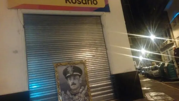 El retrato del ex presidente de facto fue dejado en la puerta del local del PRO en Maipú y San Lorenzo. Luego, apareció al costado de un contenedor. A esa altura, ya estaba roto ¿Qué hacía el retrato de Jorge Rafael Videla en la puerta del local del PRO? Se trata de un enorme cuadro del ex presidente de facto que apareció en el ingreso de la oficina, ubicada en Maipú y San Lorenzo apoyado sobre la cortina metálica que sirve de protección. Desde el PRO, el concejal Carlos Cardozo confirmó a Rosario3.com que anoche alguien dejó el inmenso dibujo del dictador en el ingreso del local partidario. Según precisó el edil, se trata de una especie de dibujo enmarcado de manera sencilla en cartón. Luego, apareció en al contenedor de basura que está ubicado cerca del inmueble. Esta mañana, la imagen presentaba roturas. Más tarde, la periodista Evelin Machain de Radio 2, contó que la lámina fue retirada por un recolector informal que la cargó en su carro. La situación fue fotografiada y las imágenes compartidas en Twitter.
