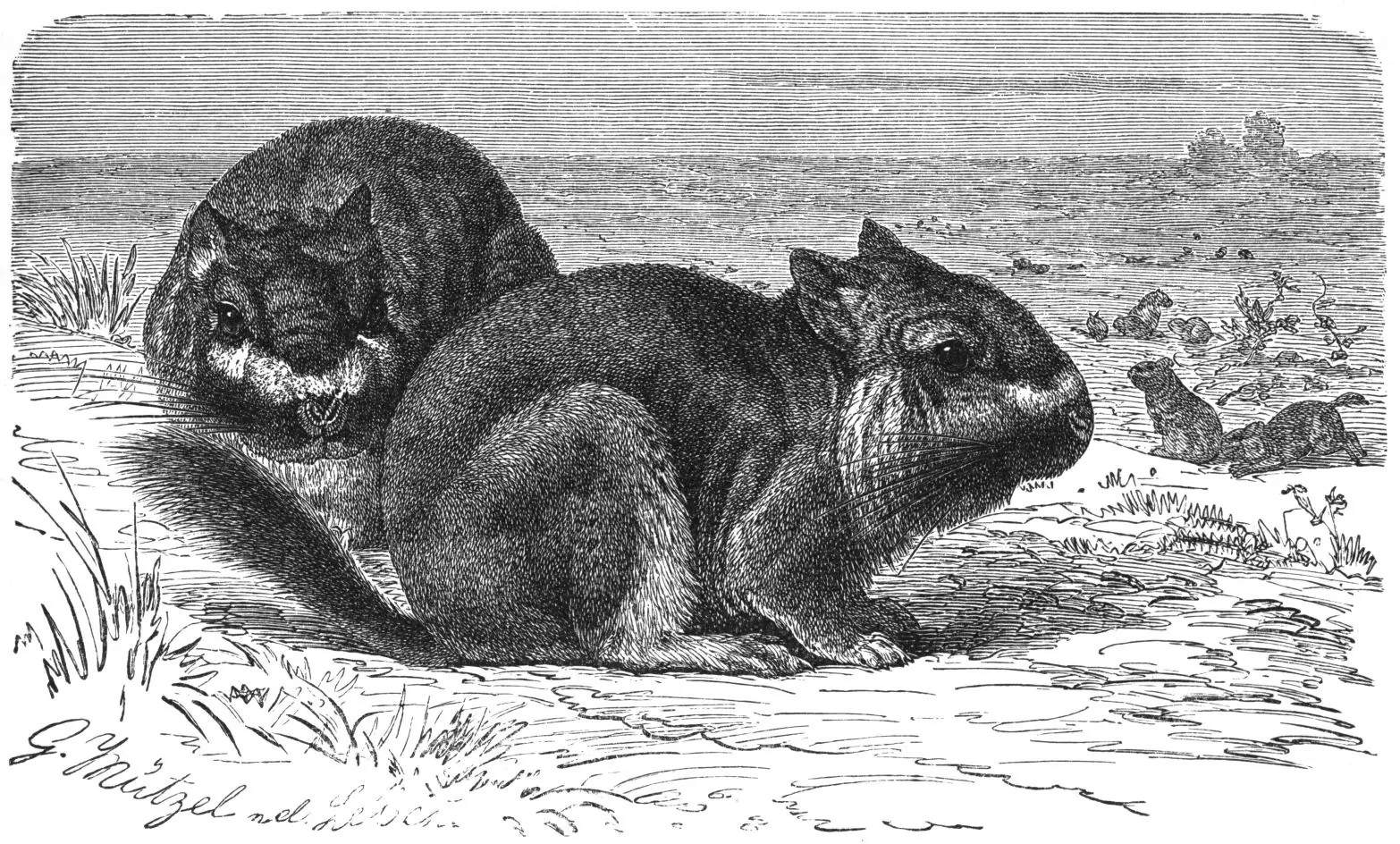 Fauna Santiagueña: VIZCACHA Informacion: La Vizcacha (Lagostomus maximus) es un mamífero que pertenece al orden de los roedores, al suborden de los caviomorfos (roedores grandes, exclusivos de Sudamérica) y a la familia de los chinchillidos. Por su tamaño ocupa el cuarto lugar entre los roedores de nuestra fauna, después del Carpincho, la Mara y la Paca. Presentamos en esta breve nota algunas imágenes de este animalito, en estado salvaje como siempre salvo aclaración, tomadas en el Parque Nacional Chaco Santiagueño tal vez el mejor lugar en nuestro país para observarlas en estado natural.Es de color general gris plateado o gris pardusco, con un jaspeado crema u ocre, más oscura en el dorso y más claro en los flancos. Vientre y cara interna de las patas blancuzcos. Cara con un contrastado diseño blanco y negro mas notable en el macho. Por este diseño es practicamente inconfundible.El hábitat preferido por las vizcachas es el terreno no inundable de monte abierto , con suelos fáciles de excavar y que permitan la construcción de las madrigueras subterráneas características de esta especie denominadas "vizcacheras". Las mismas poseen un microclima propio que les permite vivir en zonas con amplia variación climática.En nuestro país se la encuentra en la región chaqueña, el espinal, algunas zonas del monte y originalmente la región pampeana donde hoy esta prácticamente extinguida o subsistiendo en zonas muy marginales y relictualmente. Ha desaparecido del sur de Córdoba , Santiago del Estero y Santa Fe, así como también de la mayor parte de la provincia de Buenos Aires y el este de La Pampa. La ampliación de la frontera agropecuaria la está desplazando aún más. Esto lo pudimos ver en la provincia de Entre Ríos donde el desmonte para sembrar soja o eucaliptos ha dejado al Parque Nacional El Palmar como una "isla" de vegetación nativa rodeada por extensiones de cultivos. Los guardaparques relocalizan vizcachas de sitios con vizcacheras que han de desaparecer y las traen al parque ubicándolas en cuevas abandonadas. También les complementan la dieta hasta que las vizcachas se aquerencian con su nuevo hogar.Como comentamos antes, la Vizcacha está presente en el folclore y en los cuentos criollos suele aparecer como un personaje mal pagador. En uno de ellos es quien compraba tabaco a la Lechuza. Ésta, al borde de la quiebra, decide cobrarle a su cliente que la elude escondiéndose en su cueva. Por ello, desde entonces, la Lechuza de las Vizcacheras está apostada en las cercanías reclamándole su dinero. Alimentacion: Su alimentación es exclusivamente herbívora, prefiere hierbas y semillas, pero no desprecia otros vegetales que encuentra próximos a su cueva "barriendo" el terreno alrededor de la misma formando "peladares" que delatan su ubicación. A medida que se extiende el "peladar" va aumentando el radio hasta 200 o 300 m desde de la cueva. Lo normal son de 25 a 50 m para evitar predadores. Amenazas para la supervivencia La vizcacha es un animal que ha sido cazada continuamente por los productores agropecuarios desde 1907. En Argentina, inclusive, fue implantado un sistema de primas para estimular su caza pero el mismo ya no es necesario ya que el número de vizcachas ha sido muy reducido.A pesar de las persecuciones que sufre no se encuentra en peligro de extinción a nivel nacional ni en ninguna categoría de peligro. Por el contrario sus poblaciones son bastante estables en general aunque sufre extinciones locales en su amplio rango de distribución que abarca desde Bolivia y Paraguay hasta el norte de la patagonia en nuestro país. En Uruguay fué introducida en 1889 en el Departamento de Salto, pero fue extinguida. Reproduccion: La duración de la gestación de la vizcacha es de 154 días. En estado salvaje se cuentan una a dos camadas de 1 a 2 crías por año. La reproducción es estacional y ocurre en otoño, época en la cual las hembras entran en celoLa reproducción es estacional y ocurre en otoño, época en la cual las hembras entran en celo. Gastronomia: Su carne es muy utilizada para la elaboración de comidas regionales típicas de las zonas donde se la encuentra tales como empanadas, guisos y escabeches. Espero que les haya gustado la info sobre este animalito que esta en peligro de extincion .