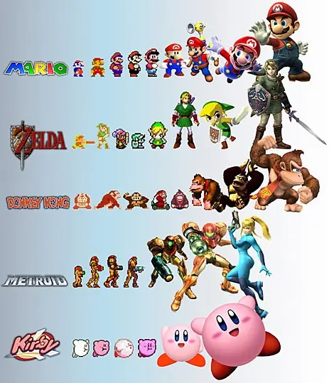 La primera aparición de mario bros fue en 1983 en un desconocido juego que la nintendo creó para árcade llamado Barazazu . Un par de años después Mario haría la aparición que le llevaría a la fama en el clásico juego Donkey Kong en donde Mario era apodado Jumpman debido a que debía saltar los barriles que le arrojaba el entonces malvado Donkey Kong. La historia más reciente es más conocida por todos ya que mario tuvo varias apariciones en nes y Atari hasta que alcanzo el estrellato de mano de Mario Bros para la nes8, un juego que dió un salto importante a la industria de los videojuegos en general e hizo que los computadores y Atari fueran olvidados por los niños de la época que alucinaban por tener una nes8. Con el tiempo los juegos de mario bros se hicieron cada mas mas populares y gracias el desarrollo de nuevas tecnología cada vez fue aumentando la complejidad de los escenarios, aventuras y habilidades de este fontanero que pareciera tener como único objetivo rescatar a su muy querida princesa Peach. Si deseas ver la evolucion de este fontanero italiano mira el siguiente video que condensa los 27 años de vida de este fontanero. link: http://www.youtube.com/watch?v=player_embedded En la imagen, podemos ver como ha ido evolucionando gráficamente Mario, el popular personaje de videojuegos, desde su aparición en las consolas en el año 1981, hasta su última aparición en el Nintendo Wii, completamente en 3D. Observando el dibujo, me doy cuenta que he jugado con casi todas las versiones que se muestran en la imagen… y me siento viejo, jajajajaja en esta imagen veras la evolucion de muchos personajes de nintendo desde sus inicios hasta la fecha ya aqui las grafica iva tomando forma aqui cuando se presento las graficas que revolucionaron los videojuegos aqui cuan la industria grafica mejoro notablemente comparen la del N64 y la del GC aqui esta la ultima evolucion del querido fontanero en la WII TODO ESTA MAS DETALLADO QUE LA ANTERION CON RESPECTO A LA EVOLUCION TAN EN GRAFICAS COMO EN DIFICULTAD DE LOS NIVELES.. BUENO AMIGOS ESO FUE TODO POR AHORA ESPERO LES GUSTE PD: AQUE EL POST TE TRAJO BUENOS RECUERDOS, PORFAVOR AMIGOS COMENTEN EN BUENA ONDA Fuente: mis recuerdo