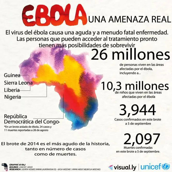Un brote sin precedentes y "fuera de control" se extiende por África OccidentalEs un virus que se transmite por contacto directo y de mortalidad muy elevadaCausa fiebres hemorrágicas para las que no hay vacuna ni tratamiento curativoSu expansión en Europa es mucho menos probable que en los países de África ¿Qué es el ébola? El ébola es una enfermedad infecciosa viral aguda que produce fiebre hemorrágica en humanos y primates (monos, gorilas y chimpancés). El virus del Ébola, uno de los más mortíferos que existen, se detectó por vez primera en 1976 en dos brotes simultáneos ocurridos en Nzara (Sudán) y Yambuku (República Democrática del Congo, entonces Zaire). La aldea en que se produjo el segundo de ellos está situada cerca del río Ébola, y de ahí toma su nombre. Tiene cinco variedades: Sudán, Zaire, Reston, Côte d'Ivoire (Costa de Marfil) y Bundibugyo, de las cuales Sudán, Zaire y Bundibugyo se han asociado a importantes brotes de fiebre hemorrágica en África. El virus altera un tipo de células llamadas "endoteliales" que recubren la superficie interior de los vasos sanguíneos y la coagulación. Al dañar los vasos sanguíneos las plaquetas no son capaces de coagular, y los pacientes sucumben a un shock hemorrágico que deriva en una pérdida muy grave de sangre. | ¿Cómo se transmite la enfermedad? El virus es transmitido al ser humano por animales salvajes y se propaga en las poblaciones humanas por contacto directo con sangre, líquidos orgánicos (saliva, semen) o la piel y tejidos de las personas infectadas o sus cadáveres, y por el contacto con equipo médico contaminado, tales como agujas. Aunque los monos han sido una fuente de infección para las personas, se considera que los murciélagos de la fruta de la familia Pteropodidae son los huéspedes naturales del virus. Sin embargo, este extremo no está confirmado, por lo que, al desconocerse el origen natural del virus, no se ha podido determinar aún cómo apareció el ébola por primera vez en un ser humano. + 2 Maquina si te salve la noticia del dia!