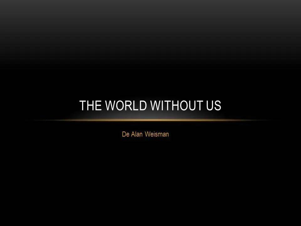 Bueno esto es como una linea del tiempo, que abarca desde los 2 dias hasta los 6500 millones de años, y... un poco mas... Les mostrare lo que fue una pequeña exposicion en powerpoint que realice en mi escuela, espero lo disfruten.A continuación una breve explicación.El mundo sin nosotros (título original: The World Without Us) es un libro científico que trata del impacto que tendría sobre la Tierra la desaparición de los seres humanos. Su autor es el periodista estadounidense Alan Weisman.El mundo sin nosotros resume, por ejemplo, la forma en que las ciudades y hogares se habrían de deteriorar, cuántos artefactos artificiales prevalecerían y cómo evolucionarían las formas de vida restantes.'La Tierra Sin Humanos' (Titulo original: Life after people) realizado por 'The History Channel' ofrece un sorprendente viaje visual a través de la hipotética evolución natural del mundo en caso de que el ser humano desapareciera por completo.Comienza planteandose estas interrogantesInicia el viaje!!2 días: A sólo 48 horas de la desaparición de la Humanidad, los subterráneos de New York se inundan irremediablemente debido a la interrupción de los sistemas de bombeo de agua.7 días: El suministro de combustible de emergencia para los generadores que refrigeran el núcleo de los reactores nucleares, se agota por completo.10 días: Las mascotas y animales de zoológico que han podido escapar, comienzan la carrera por la supervivencia. Los animales de granja que viven en corrales mueren por millones. Los perros diminutos están condenados a desaparecer; los perros callejeros y los gatos sobreviven.1 año: En todo el planeta, más de mil millones de aves sobreviven cada año al apagarse las luces de advertencia de las torres y antenas de comunicaciones, y al enfriarse los cables de alta tensión. Los animales comienzan a regresar lentamente a las inmediaciones de las centrales nucleares incendiadas o derretidas, a medida que desciende la radiación.3 años: Por la falta de calor, revientan las tuberías de las ciudades de las regiones más frías. Los escapes de gas provocan enormes incendios que sólo podrán apagarse con fuertes lluvias. Los edificios comienzan a crujir: aparecen grietas y las estructuras se vuelven inestables. La falta de un ambiente tibio provoca la desaparición de las cucarachas en las ciudades de temperatura templada, luego de uno o dos inviernos.10 años: La erosión causada por las goteras y la acción combinada de los elementos terminan derrumbando un gran número de techos de viviendas.20 años: Las columnas de hierro que soportan las vías férreas aéreas de New York están completamente corroídas. El Canal de Panamá desaparece por el avance de la vegetación y las Américas quedan unidas nuevamente. Las verduras se degradan hasta volver a convertirse en especies no comestibles.100 años: Con la desaparición del tráfico de marfil, el medio millón de elefantes sobrevivientes un siglo atrás, se ha multiplicado por veinte. Las poblaciones de pequeños depredadores -mapaches, comadrejas, zorros- se encuentran en retroceso y en peligro de extinción debido a la aparición de un nuevo competidor altamente voraz e implacable: el antiguo gato doméstico.300 años: Los puentes colgantes terminan de derrumbarse. Las paredes de numerosos diques ya no resisten la falta de mantenimiento y las fugas de agua inundan las ciudades cercanas.500 años: Los suburbios de las ciudades son invadidos por los bosques. Los árboles crecen entre restos de vajilla, electrodomésticos e implementos de cocina de aluminio y acero inoxidable.15 mil años: Los muros de New York y otras grandes metrópolis sucumben finalmente ante el avance de los glaciares. Las únicas estructuras que perduran relativamente intactas en el mundo son las subtérraneas; por ejemplo, el túnel del Canal de la Mancha.35 mil años: Los residuos de plomo que contaminaron el ambiente durante la época en que los humanos aún caminaban sobre la Tierra, por fin pudieron ser absorbidos y degradados por la Naturaleza. Para otros compuestos, como el cadmio, habrá que esperar otros 75 mil años.100 mil años: Los niveles de dióxido de carbono en la atmósfera regresan a los valores existentes antes de la desaparición de la Humanidad (aunque esto tal vez podría tomar un poco más de tiempo).250 mil años: Los niveles de radiación de plutonio contenidos en las bombas nucleares (cuyas carcazas han desaparecido por la corrosión muchos, muchos milenios antes) son absorbidos finalmente por el suelo y ya no representan una amenanza.2 millones de años: Para esta época, es posible que ciertos microbios hayan evolucionado lo suficiente como para degradar los productos plásticos y alimentarse de ellos.7.2 millones de años: Los vestigios de algunas obras arquitectónicas (estatuas, monumentos) aún permanecen en pie, si es que no fueron destruidos por sismos o inundaciones. Muchos químicos tóxicos producidos por los seres humanos (PCB, dioxinas, etc.) todavía conservan su poder mortal.10.2 millones de años: Las esculturas de bronce aún siguen siendo reconocibles.3000 millones de años: La vida persiste sobre la Tierra, aunque de formas que ni siquiera somos capaces de imaginar.4500 millones de años: El medio millón de toneladas de uranio 238 presente sólo en los Estados Unidos, llega a la mitad de su ciclo de vida. La Tierra comienza a calentarse debido a la expansión del Sol. Al menos durante mil millones de años más, las formas de vida dominantes serán los microorganismos, tal como en los comienzos de la vida sobre el planeta.6500 millones de años: La Tierra se derrite por influencia del Sol, que ya ha absorbido a los demás planetas interiores, marcando el final inevitable de nuestro planeta.Toda la Eternidad: Los fragmentos de las comunicaciones de radio y televisión transmitidas por la Humanidad durante su breve paso por el planeta Tierra, continúan viajando a través del espacio como única huel
